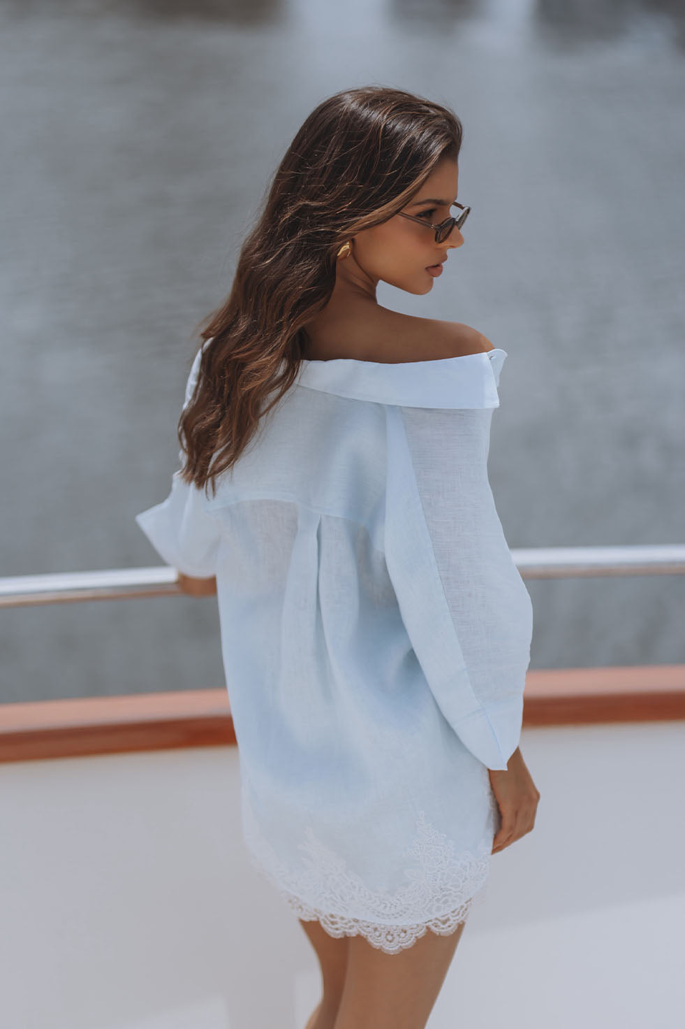 ROMARA LINEN MINI DRESS - SKY BLUE