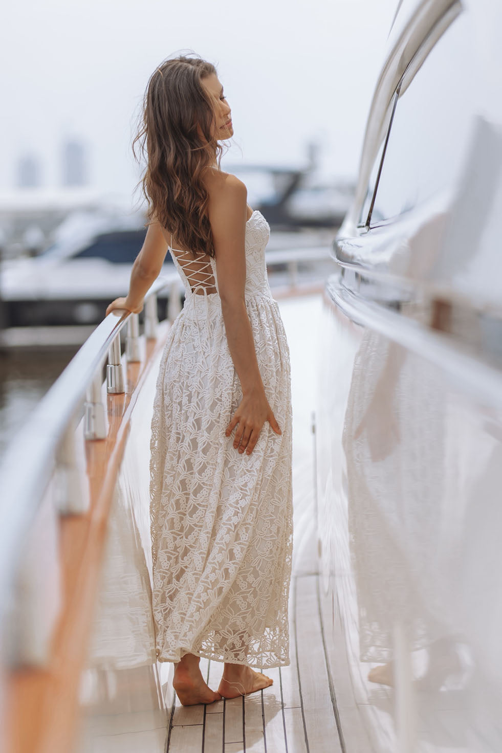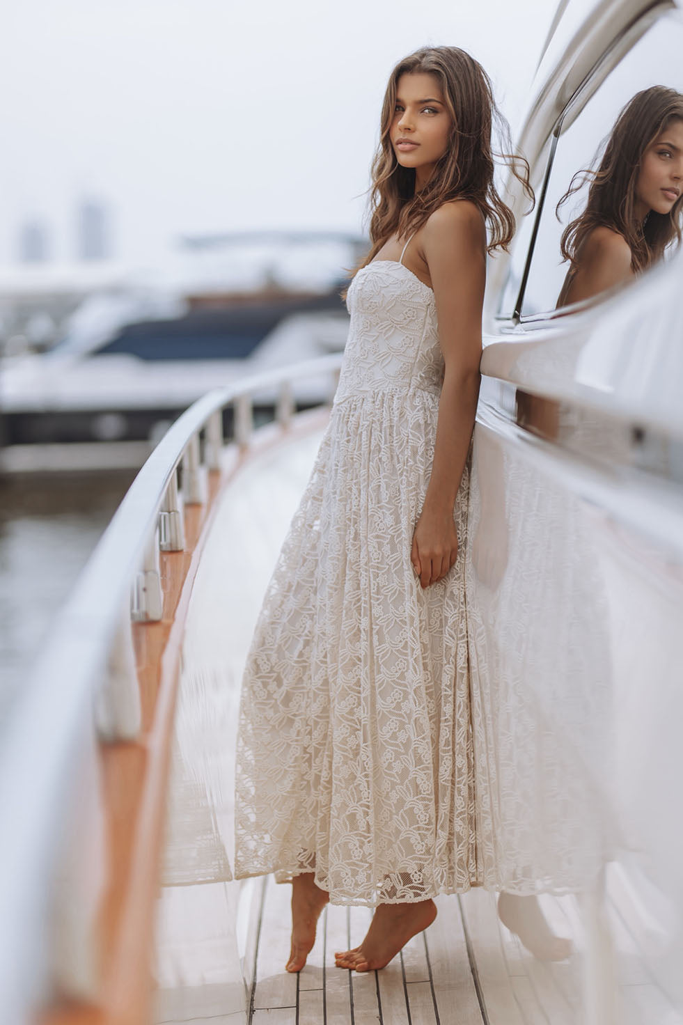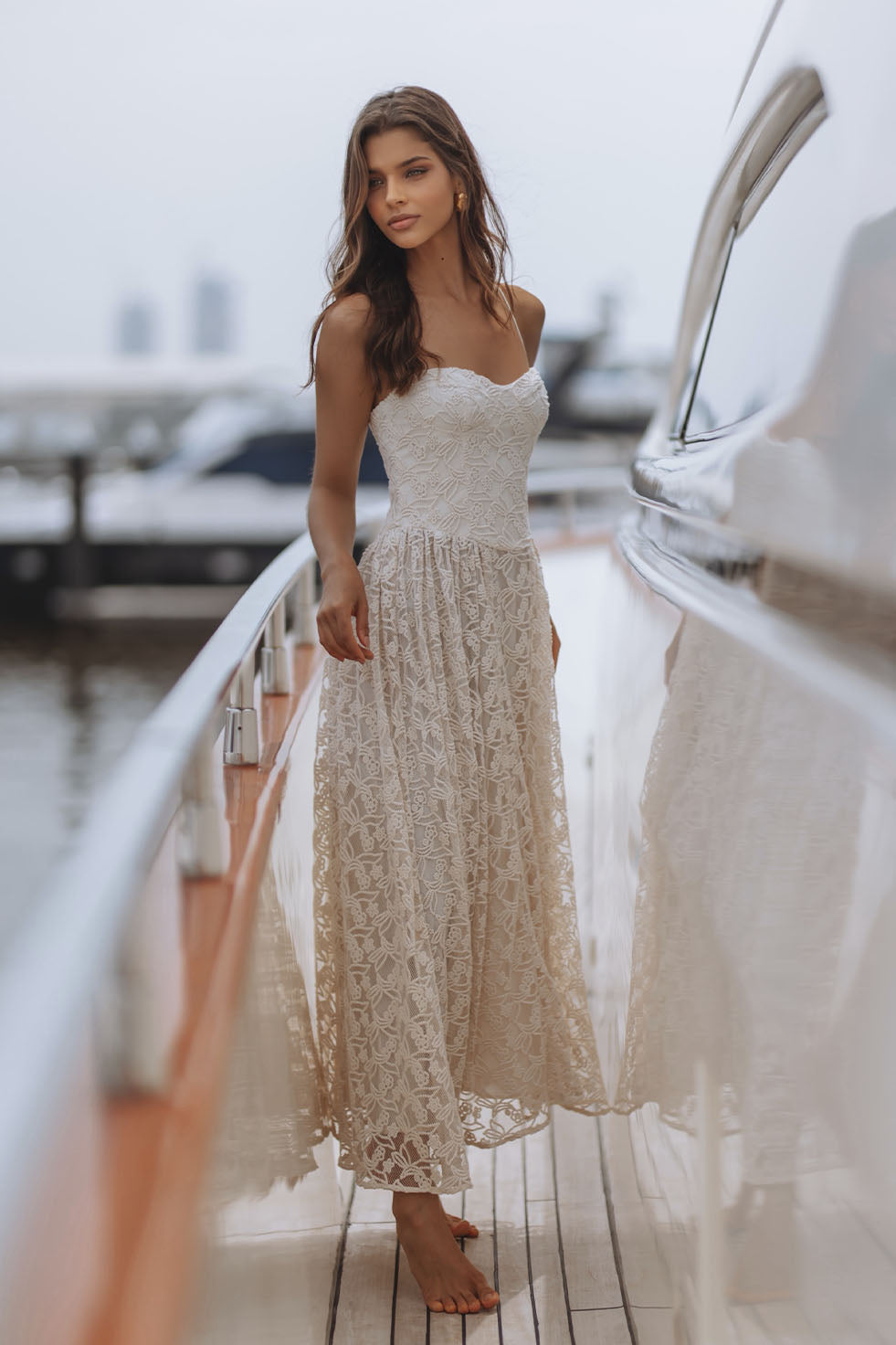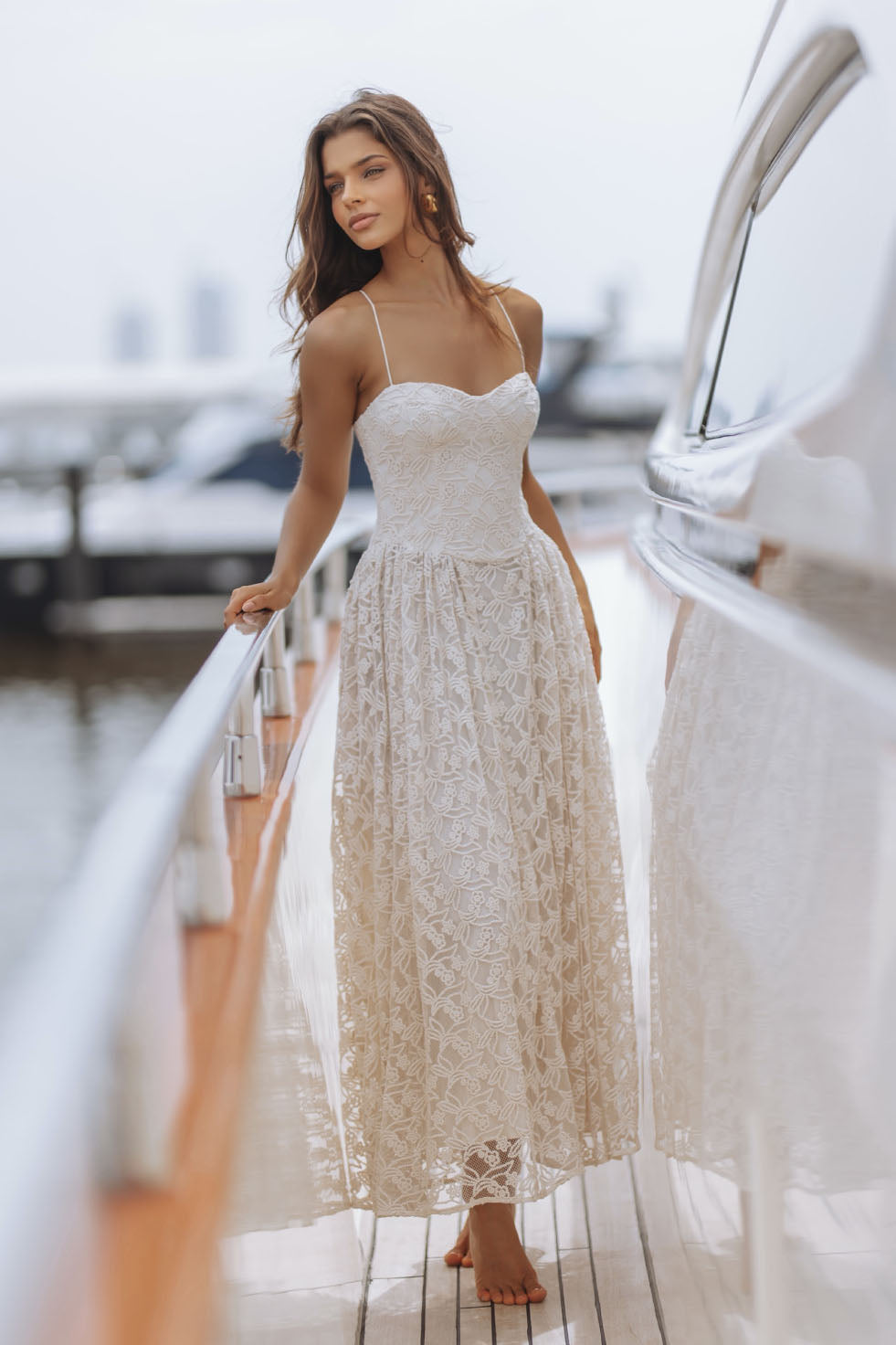 ELISAN LACE SATIN MAXI DRESS - IVORY