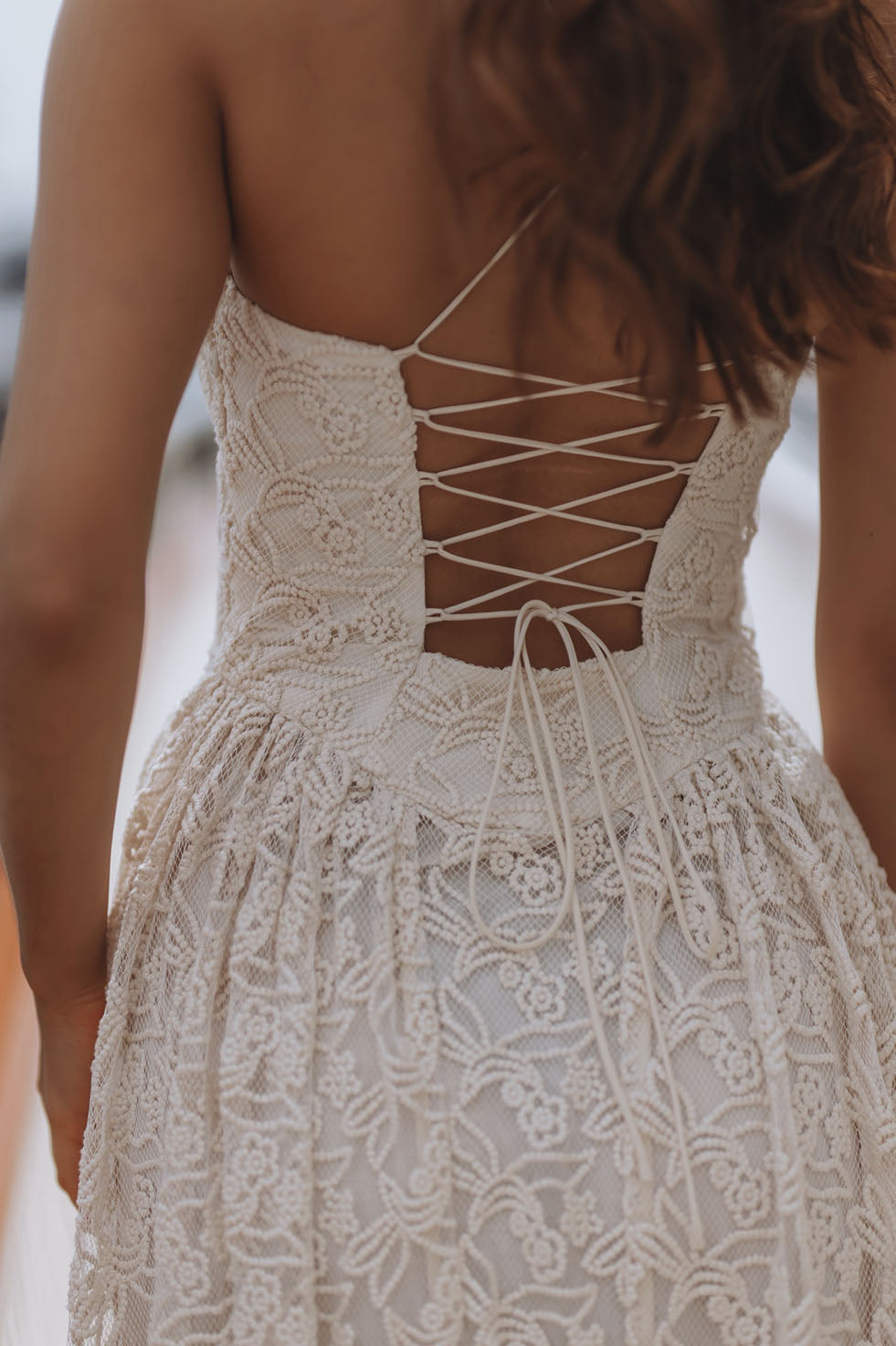 OLESSIA CORSET LINEN MINI DRESS - CAMELIA VEIL