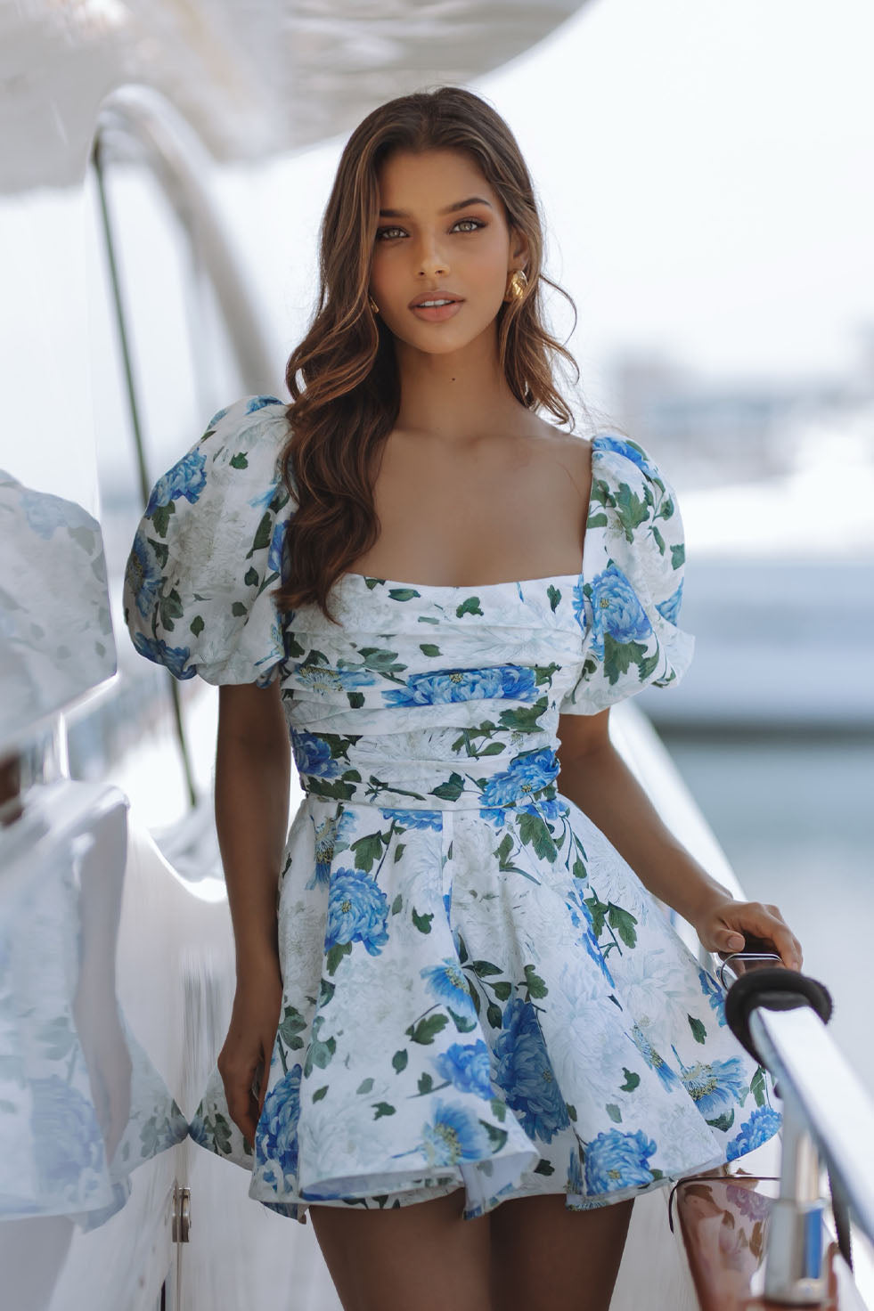 AUBRINA LINEN MINI DRESS - AZURE MEADOW