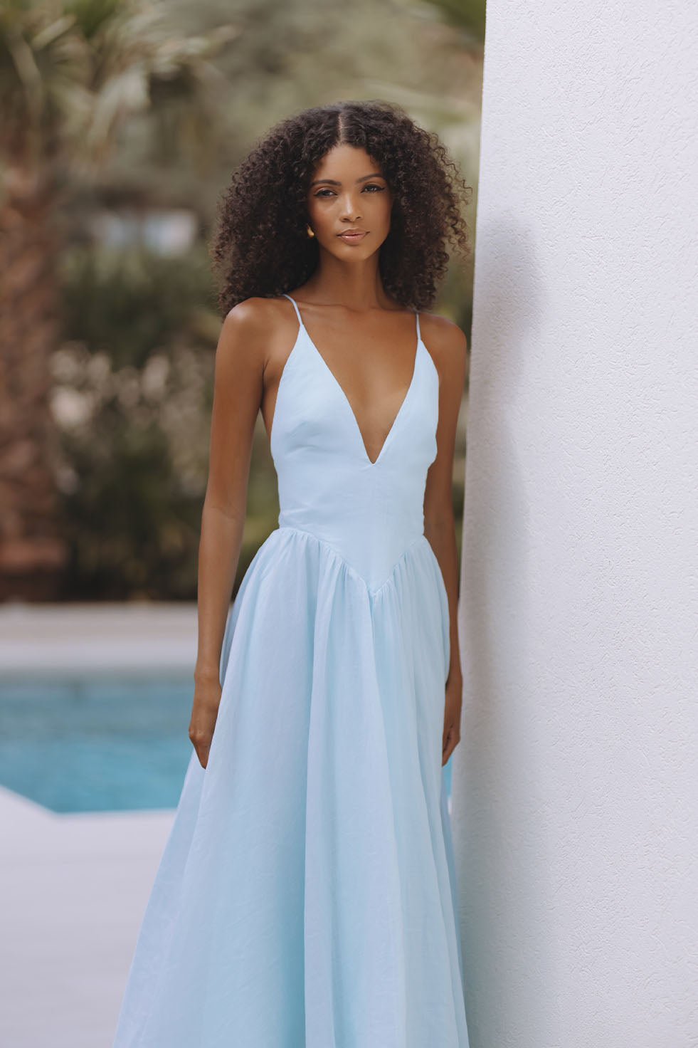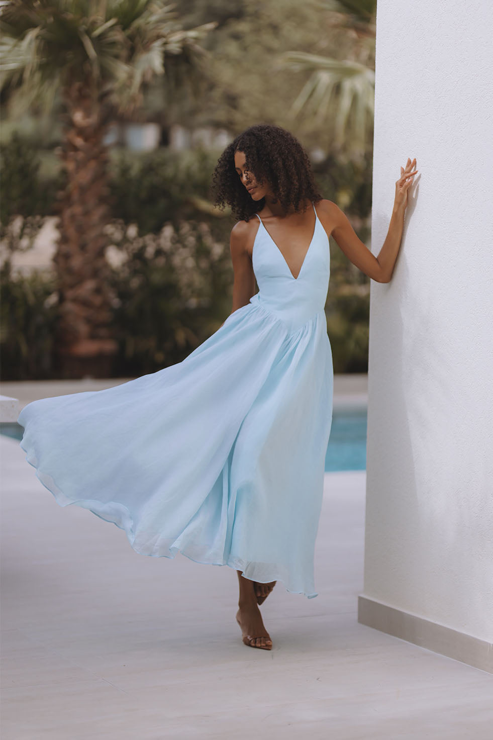 ARLETHA HALTER MAXI DRESS - SOFT BLUE