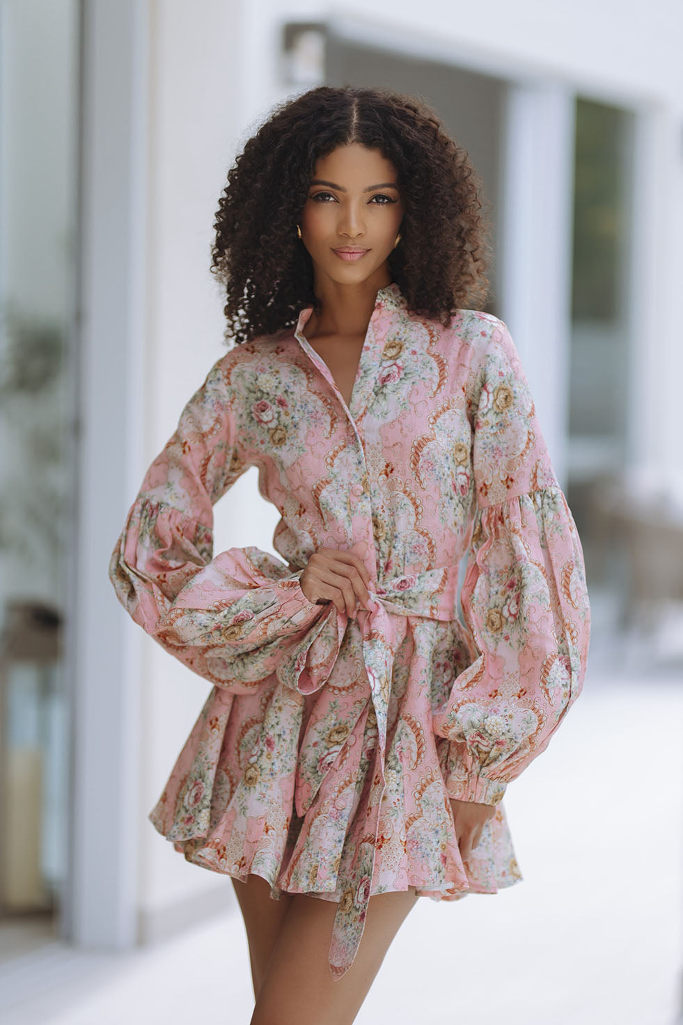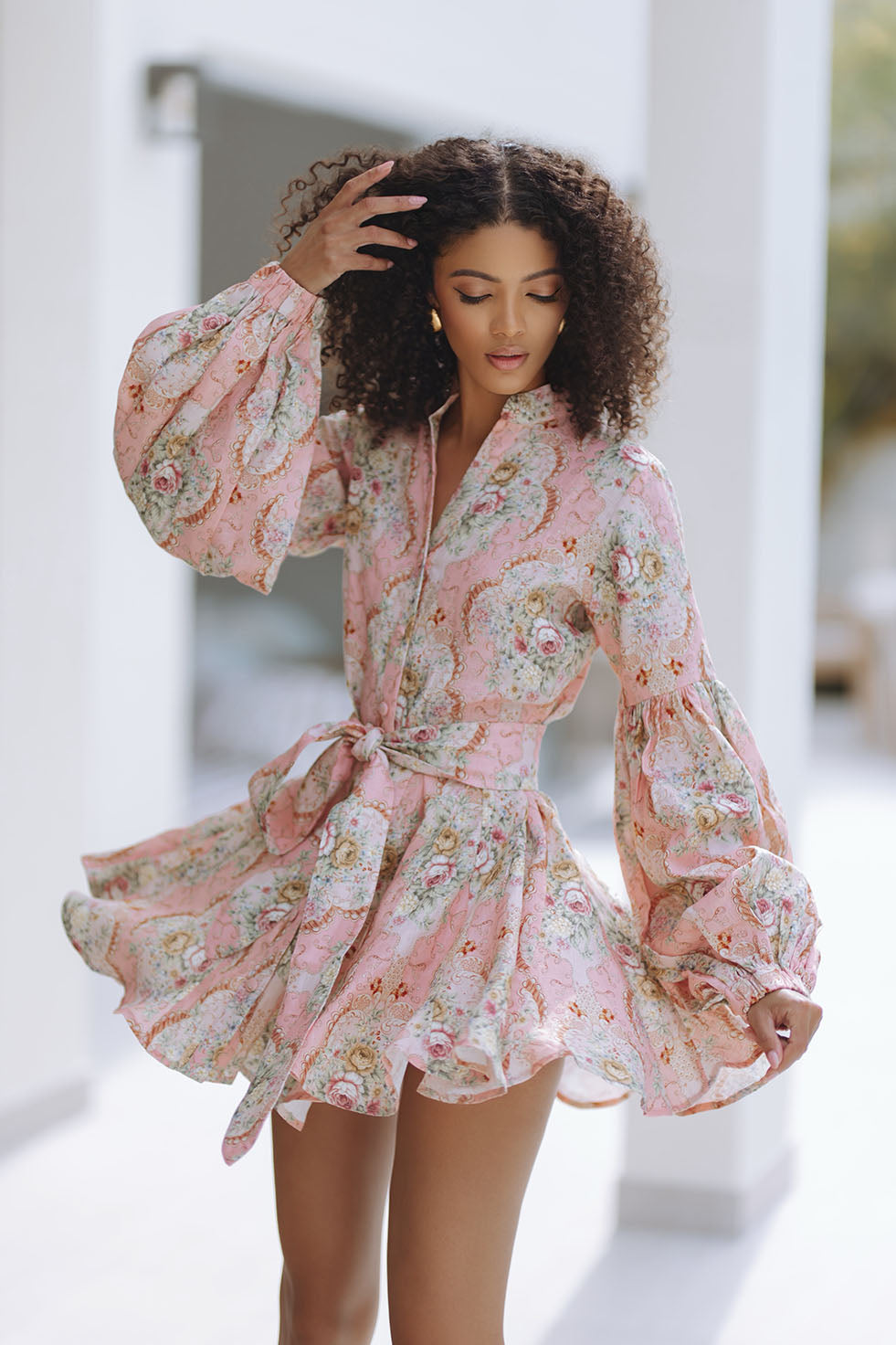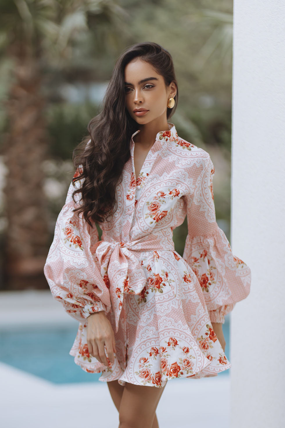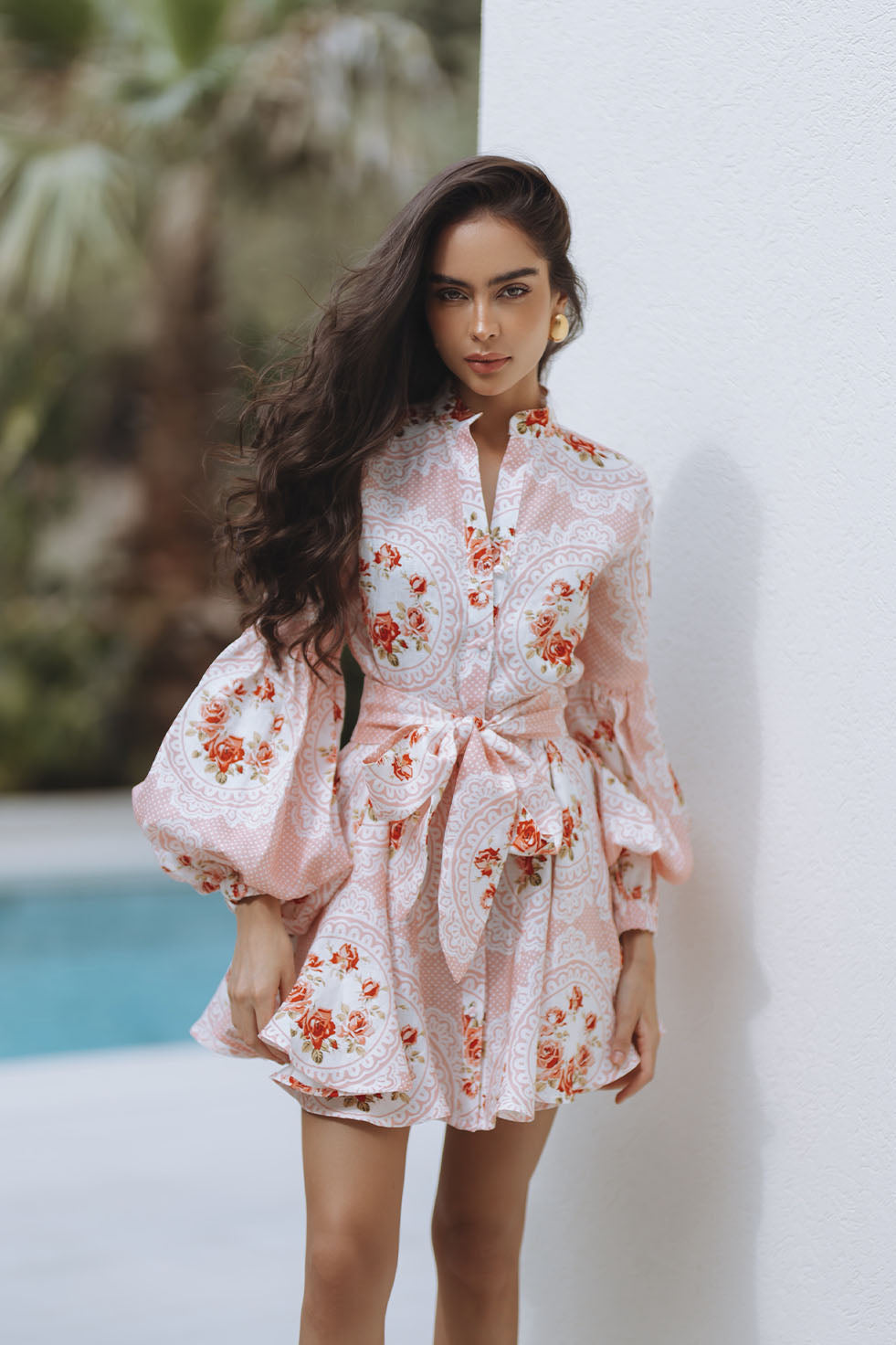 TESSA LINEN MINI DRESS - VALENTINA BLOOM