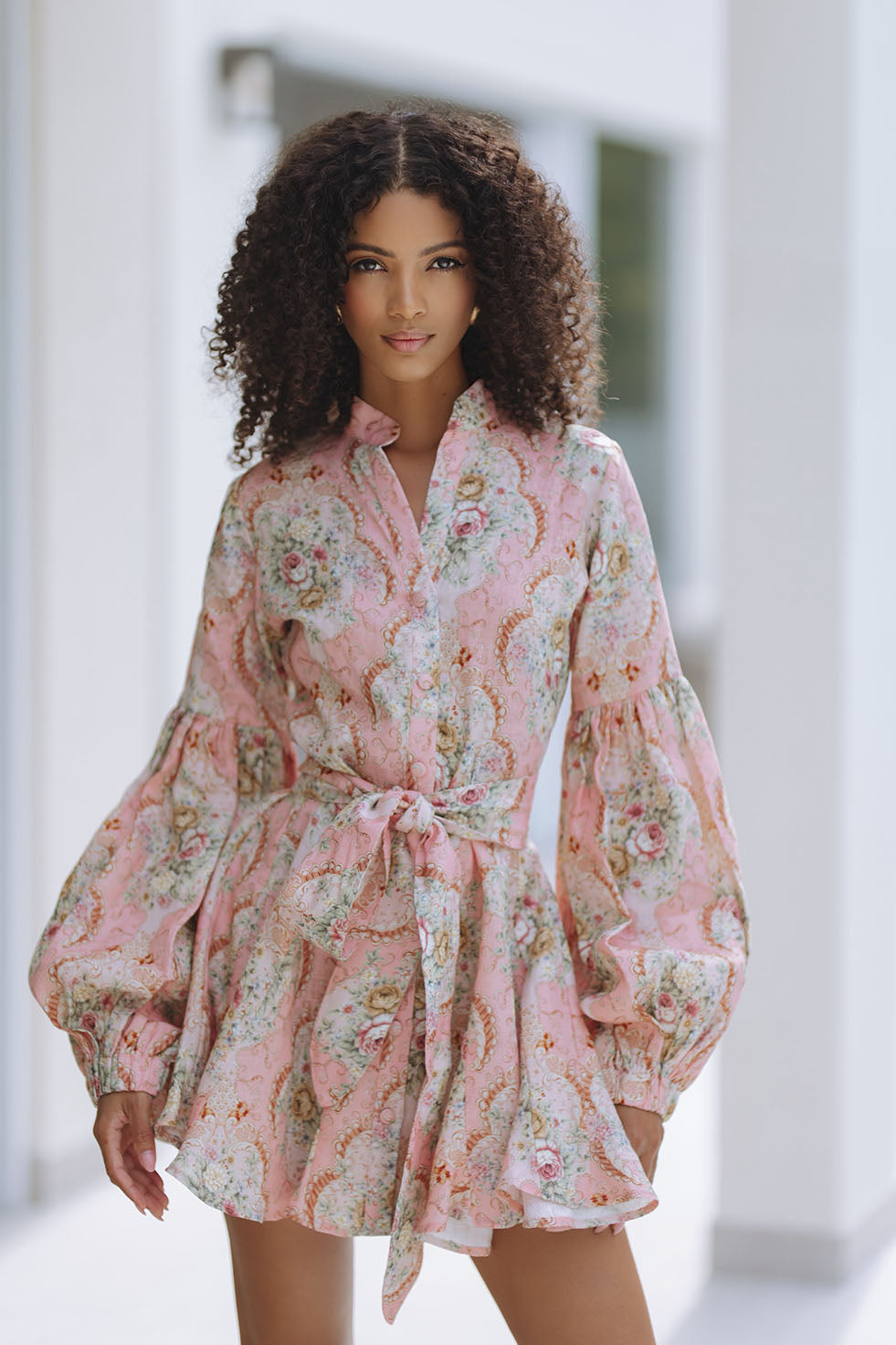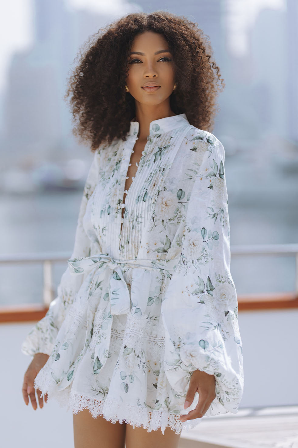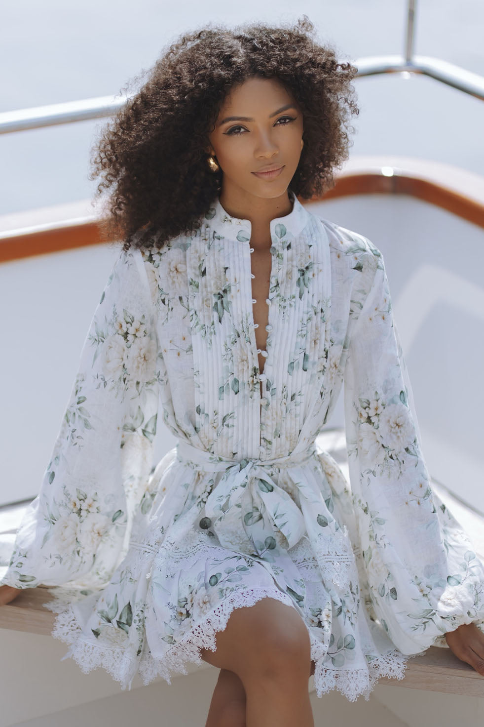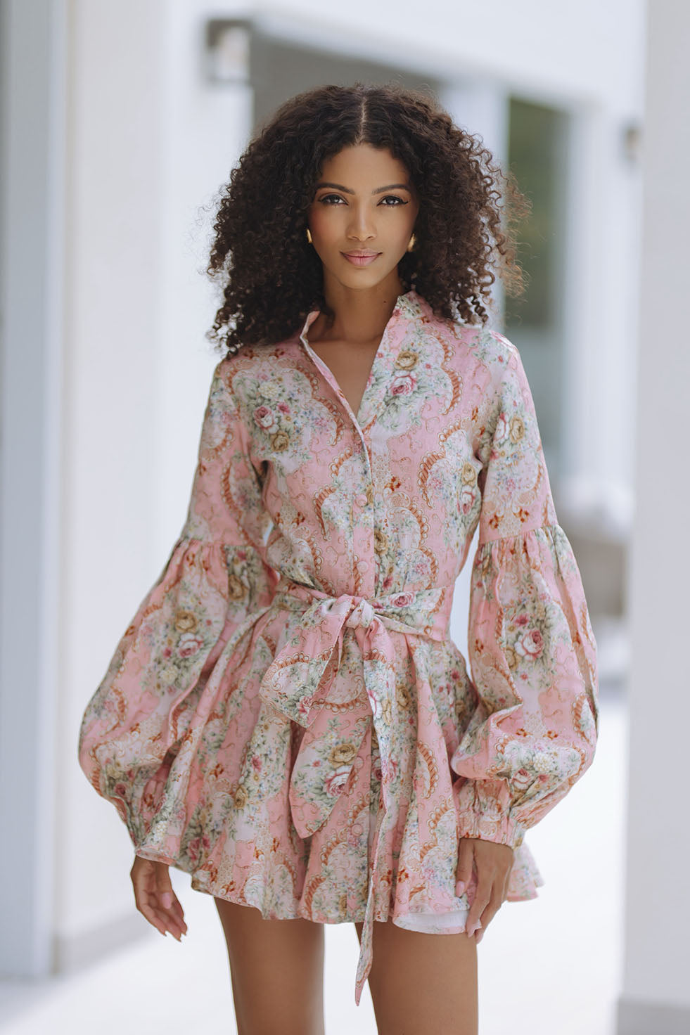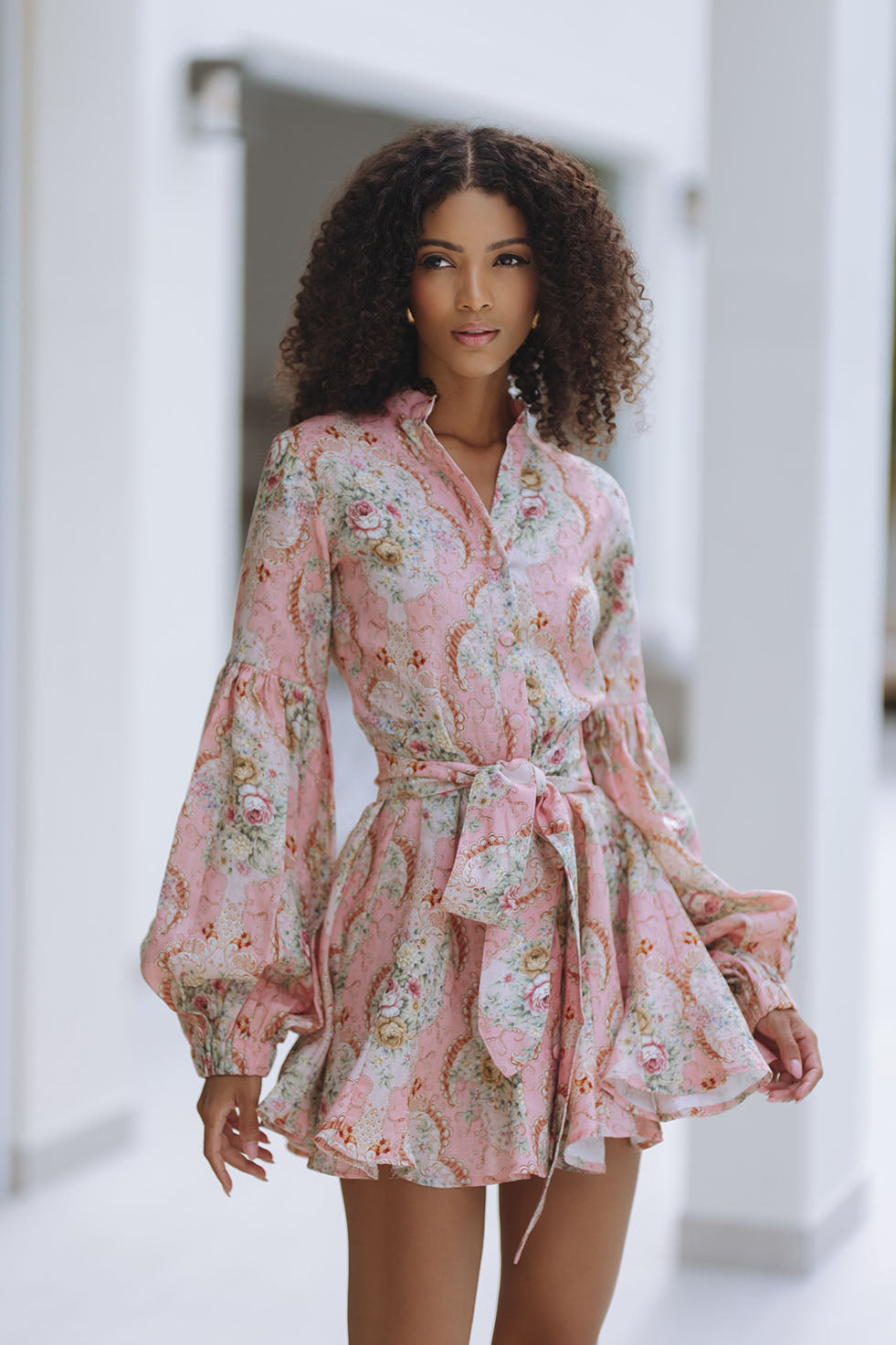 TESSA LINEN MINI DRESS - VALENTINA BLOOM