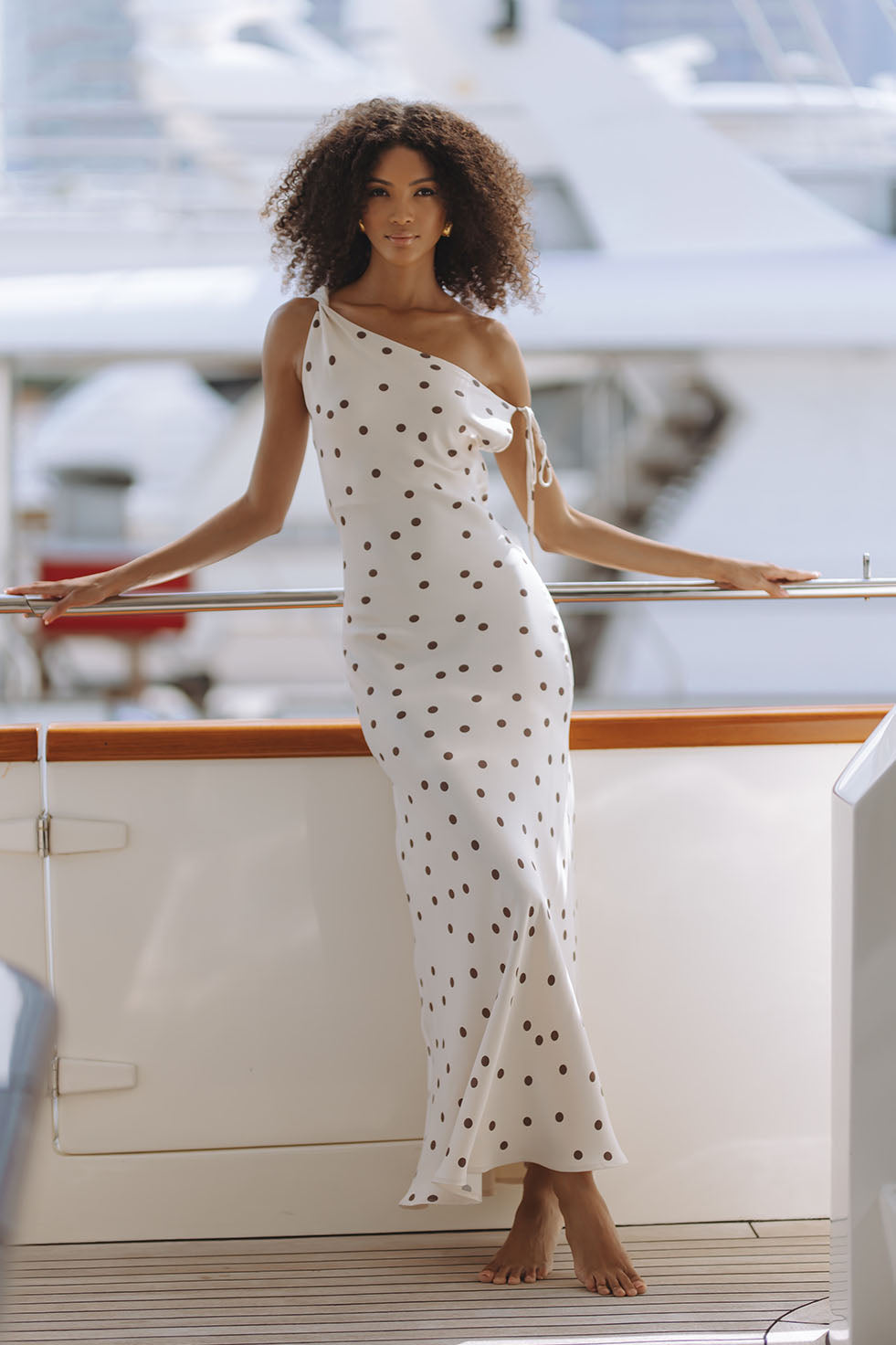 DARCY SATIN MAXI DRESS - IVORY/BROWN POLKA