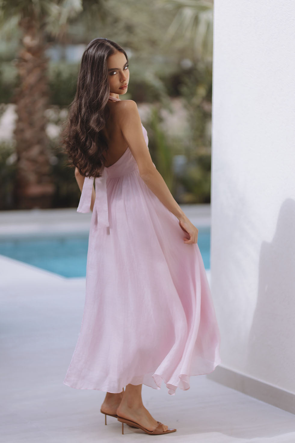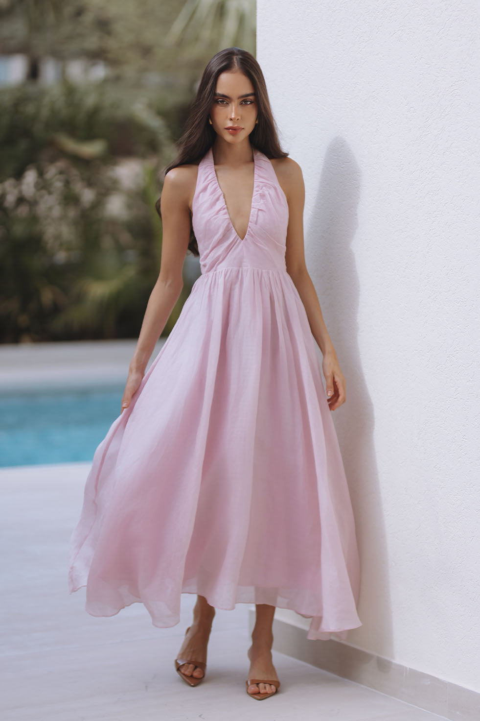 DOROTA HALTER NECK MIDI DRESS - BLISS PINK