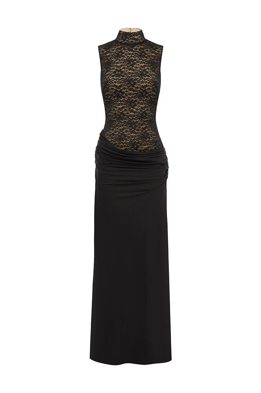 CASANA HIGH NECK MAXI DRESS - BLACK