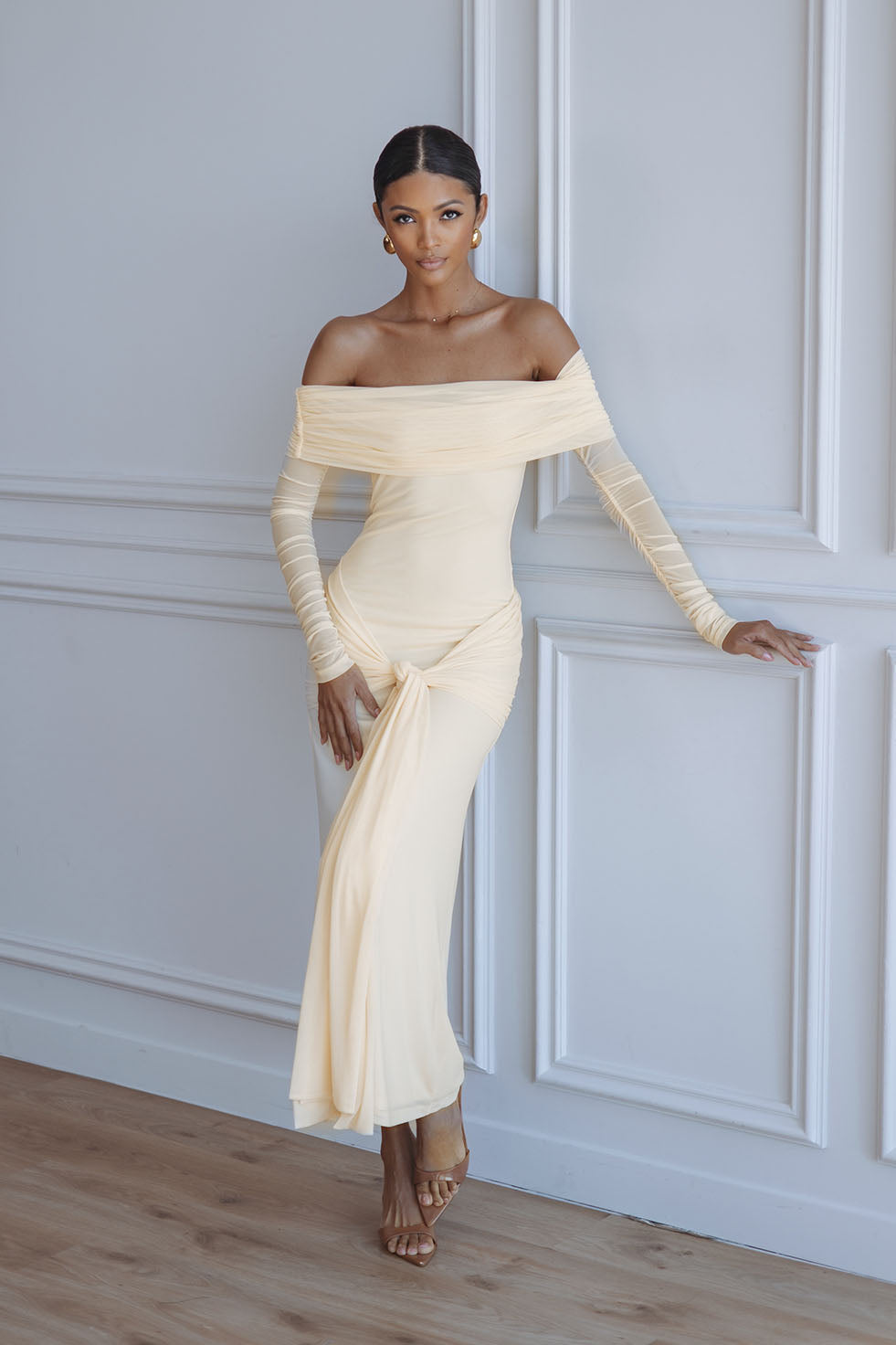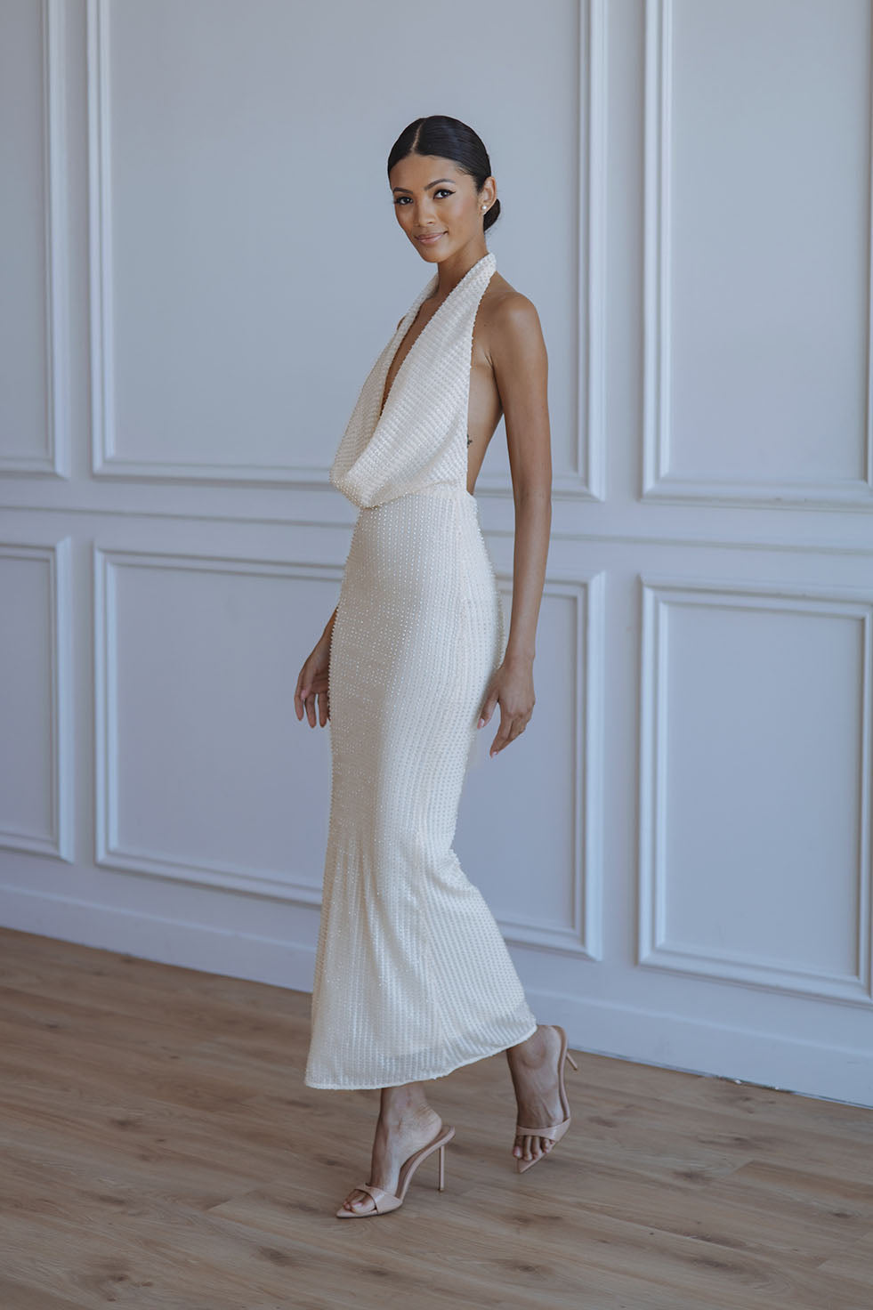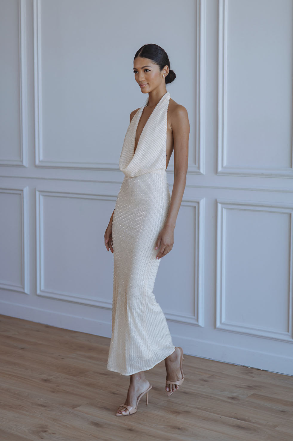 NOLA SEQUIN COWL MAXI DRESS - BUTTERCUP