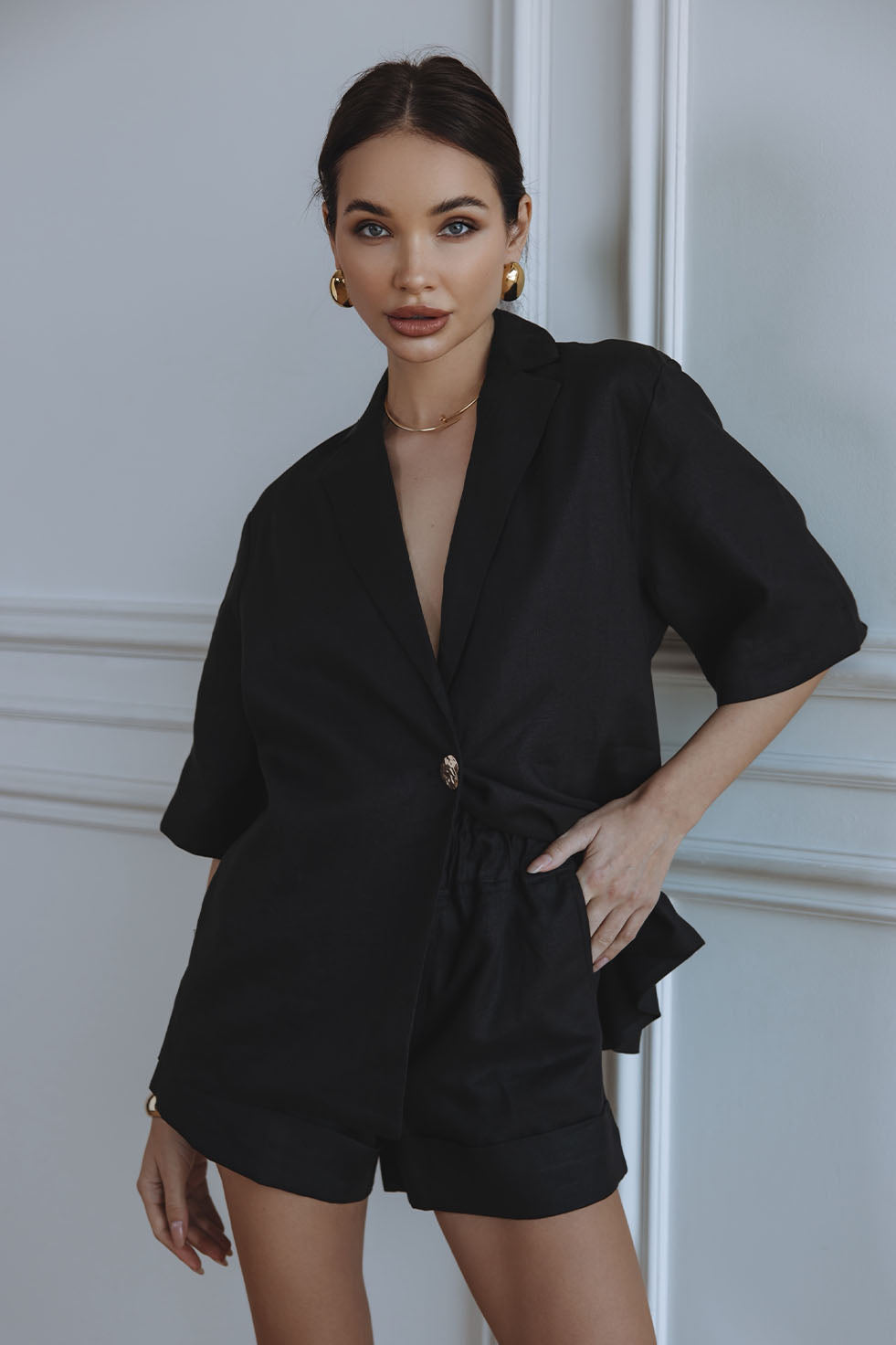 GERMAINE LINEN SHORTS - BLACK