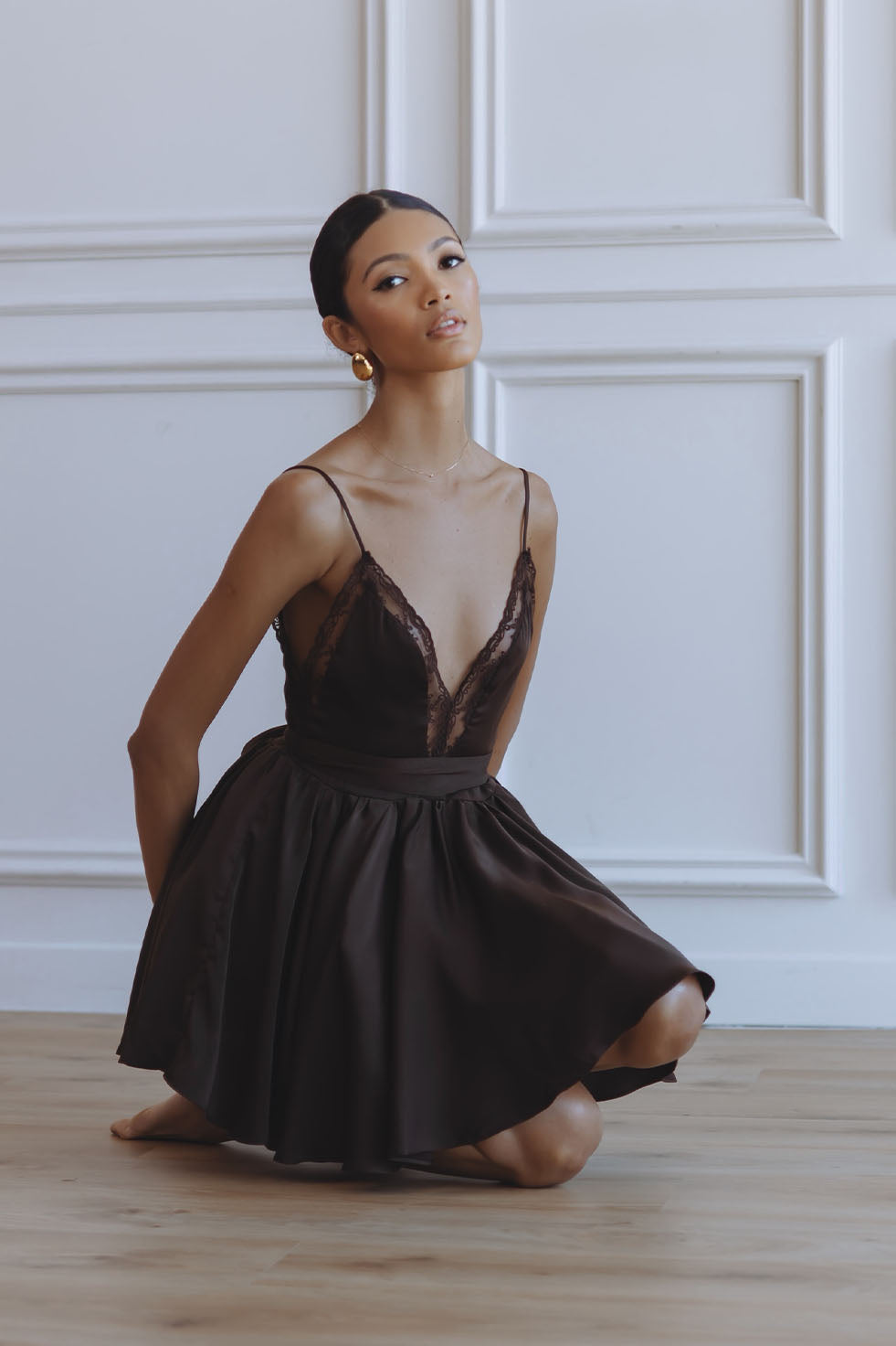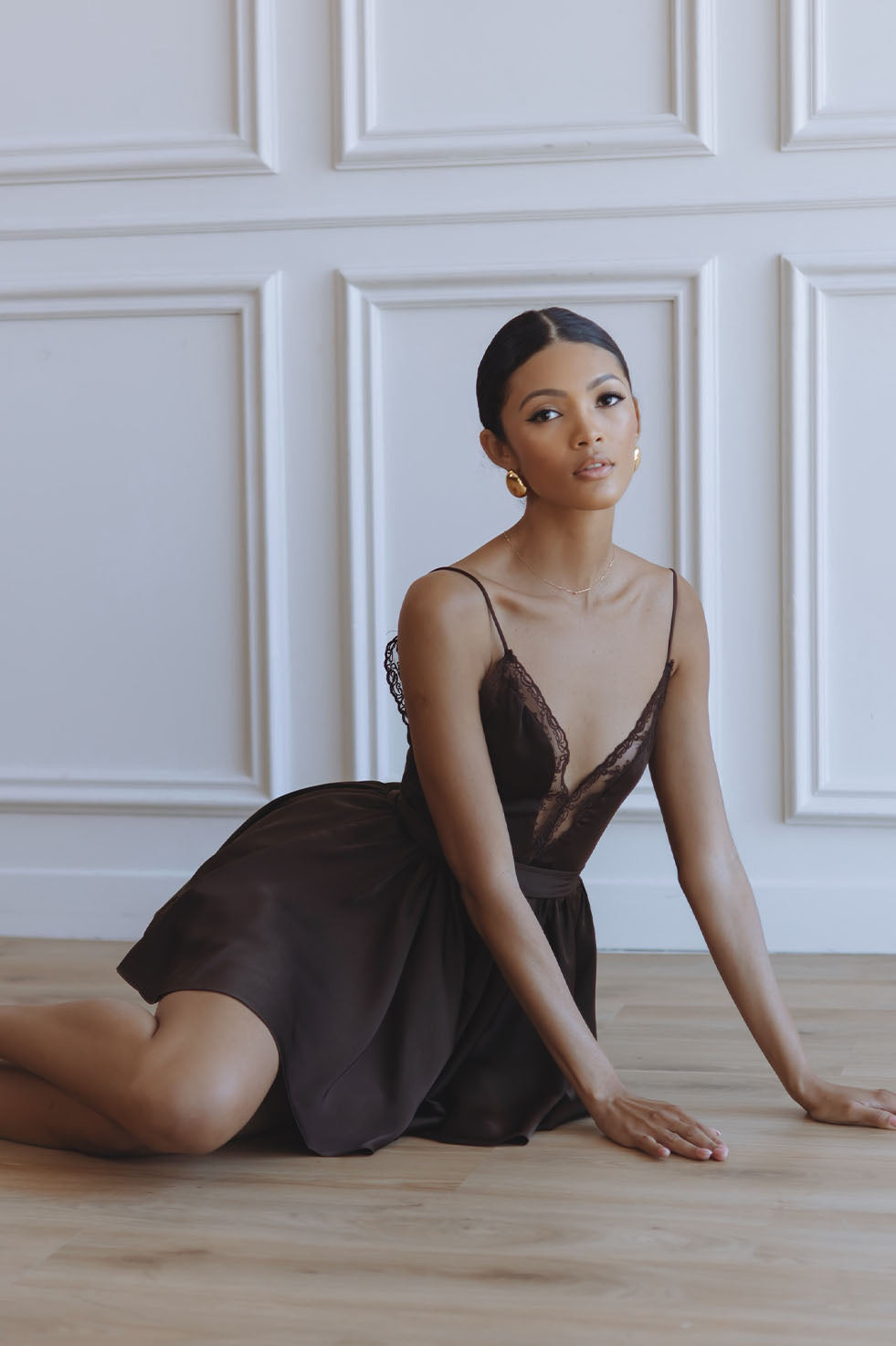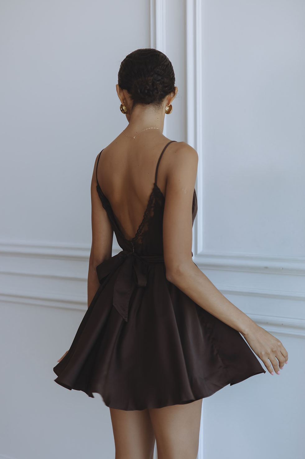 NATALIA LACE TRIM MINI DRESS - DARK CHOCOLATE