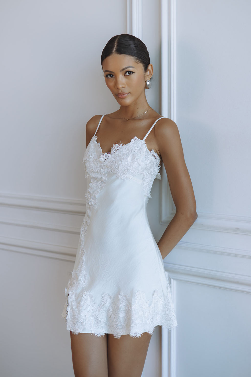 ALERIE LACE SATIN MINI DRESS - IVORY
