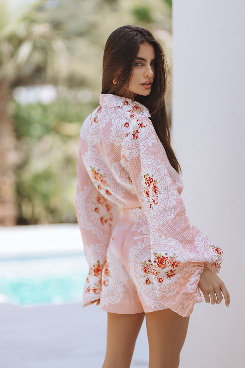 Softly romantic with a polished finish, the Jessica Linen Shorts in Rosette Cameo bring a fresh feminine touch to warm weather dressing. Designed in a blush toned floral cameo print, they pair effortlessly with the matching shirt for elevated daytime moments, vacation styling, and chic resort escapes.