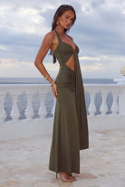 FLORA CUT OUT HALTER MAXI DRESS - OLIVE