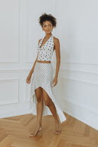 MELODY HALTER COWL TOP - CREAM/BLACK POLKA