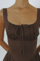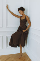 MILAN LINEN MIDI DRESS - BITTER CHOCOLATE