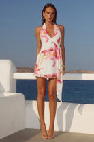 ZIA HALTER FAUX WRAP MINI DRESS - CELINA PINK