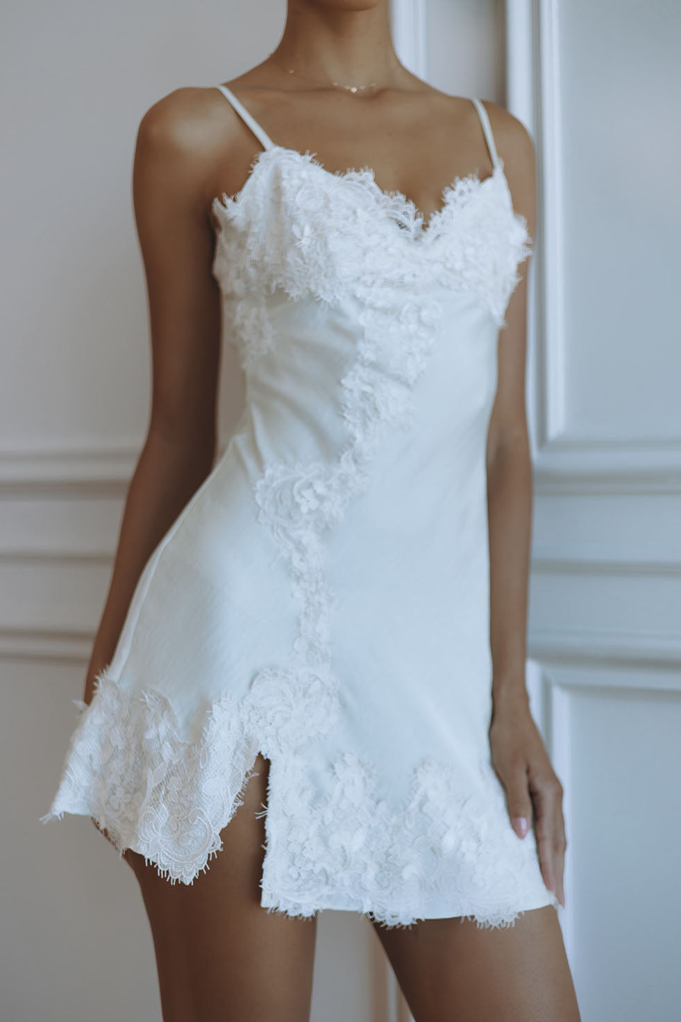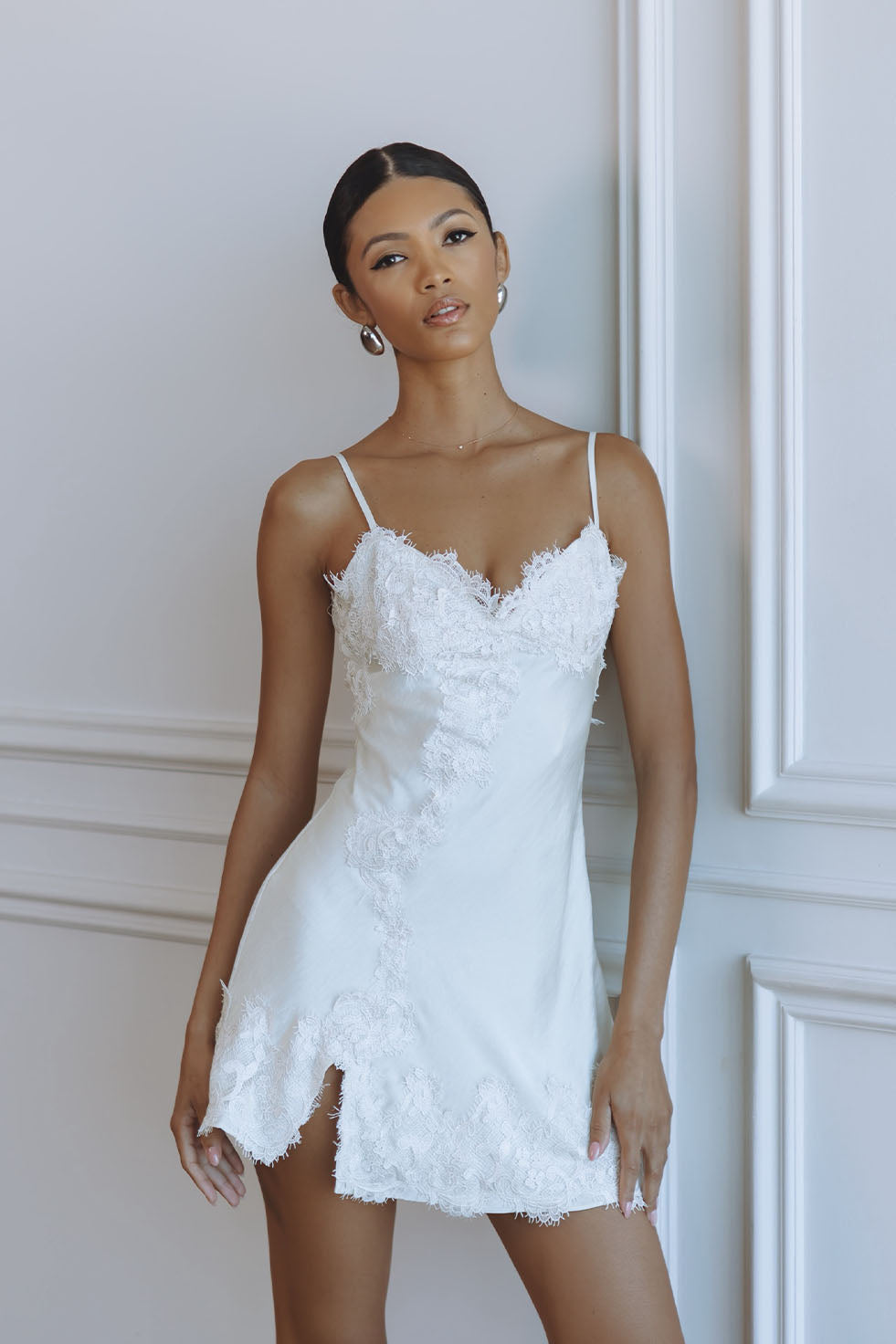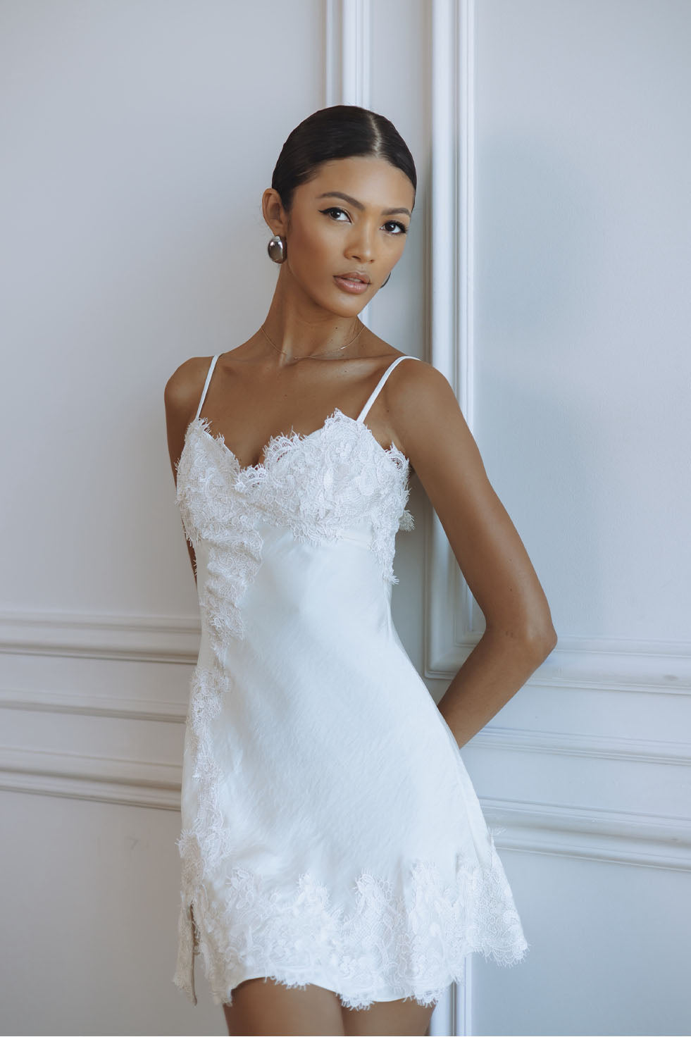 ALERIE LACE SATIN MINI DRESS - IVORY