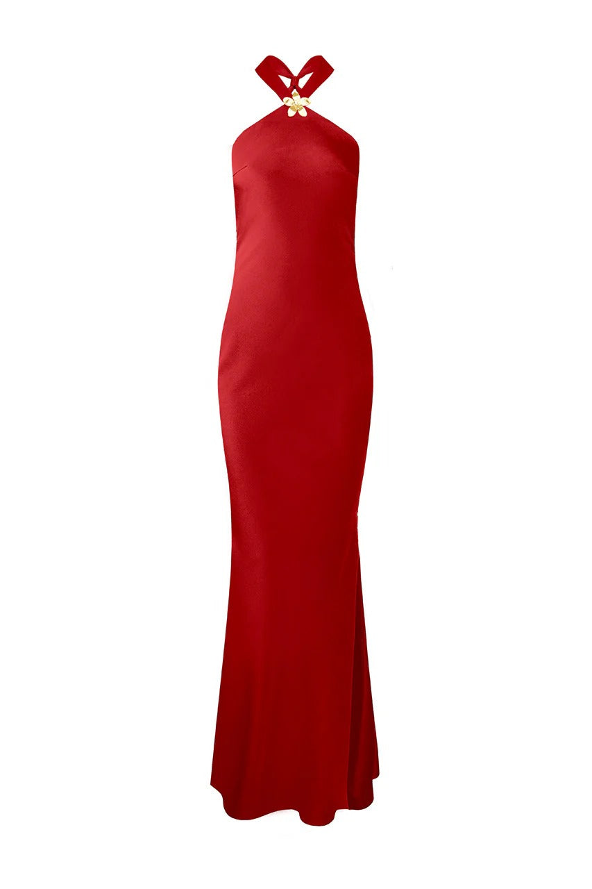 CHARA LOW CROSS BACK MAXI DRESS - CHERRY