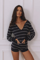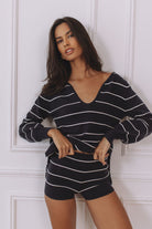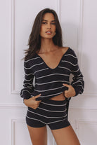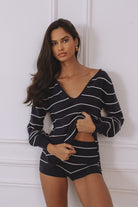 ELEONORA KNIT HOT SHORTS - NAVY STRIPE