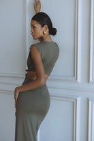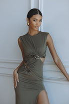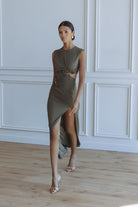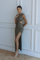 FELIX HIGH NECK MAXI DRESS - KHAKI