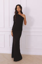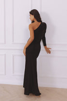 Timeless and refined, the Sabine Jersey Maxi Dress in black is a modern statement of sophistication. Crafted from our signature soft stretch jersey, it features a one-shoulder silhouette with gentle draping and a fluid, body-skimming fit. Two adjustable strings at each side tie elegantly at the back, creating a cinched waist that defines the figure while maintaining effortless comfort. The classic black tone makes Sabine a versatile piece for any occasion, day or night.