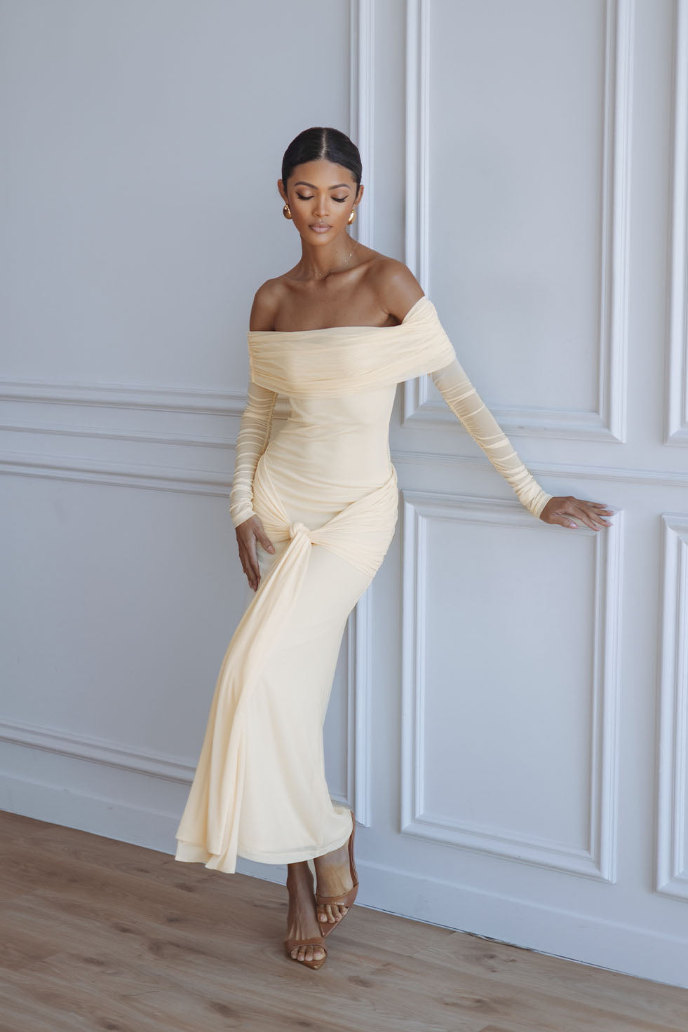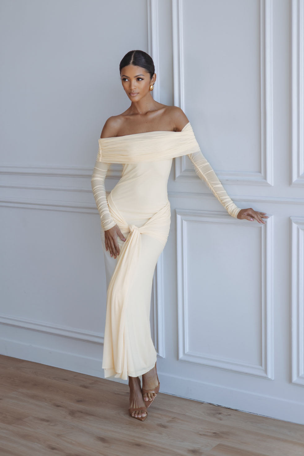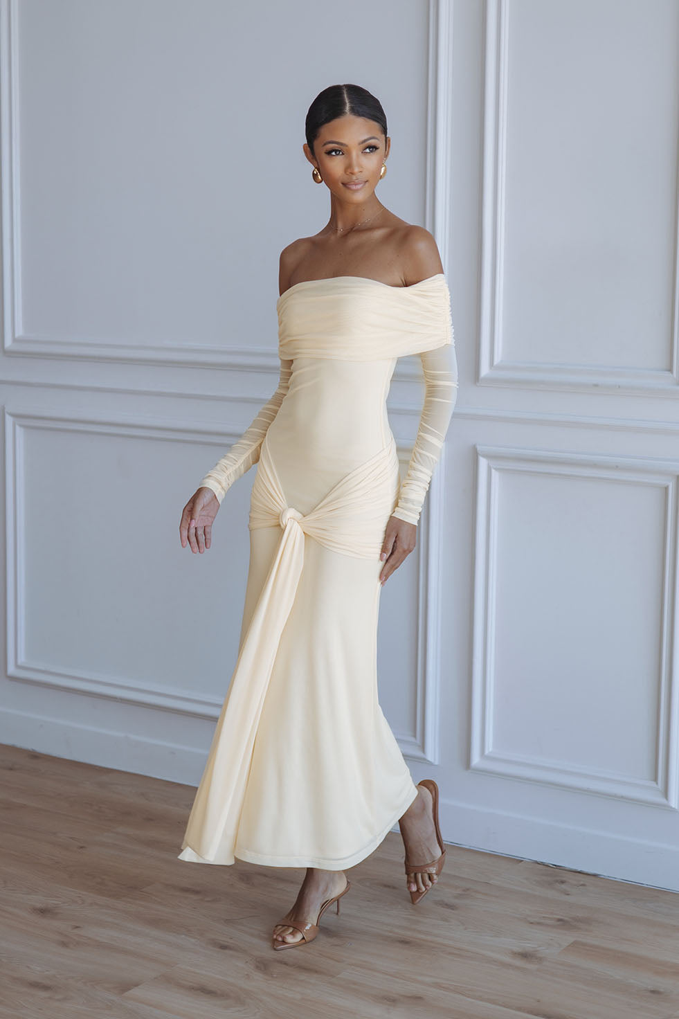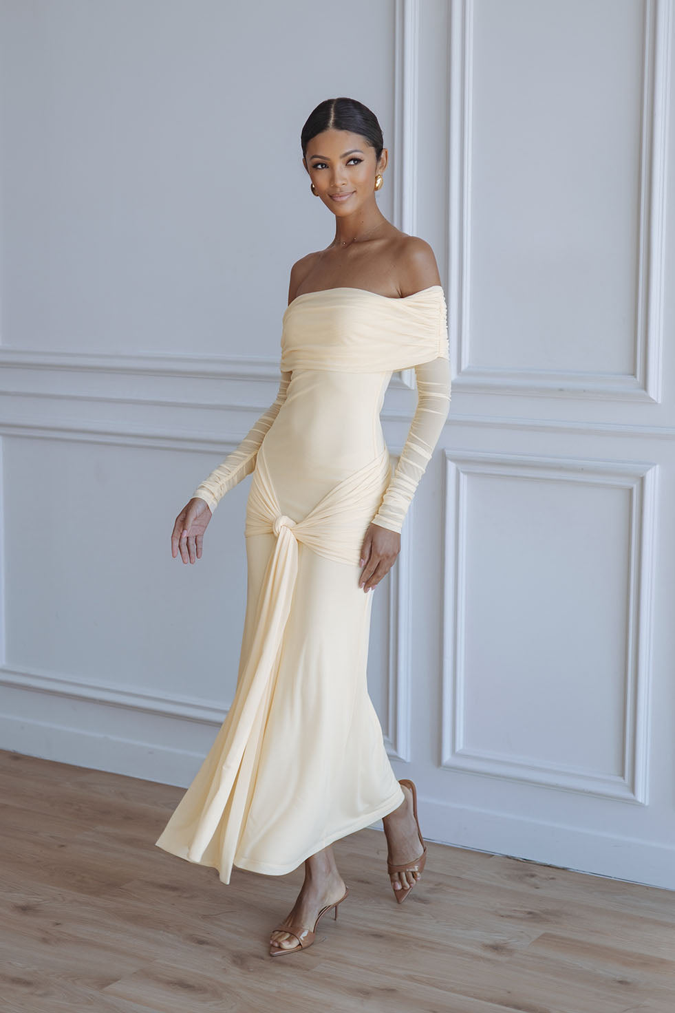 SELINA TIE FRONT MESH DRESS - BUTTERCUP