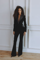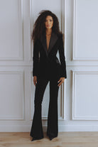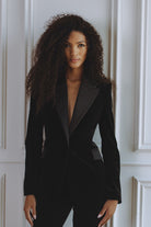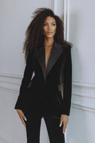 The Voltaire Velvet Blazer is designed to bring refined evening glamour into a modern, structured silhouette. Crafted from a plush, soft-touch velvet, it features strong shoulders, a tapered waist, and sleek satin lapels that add depth and dimension. Fully lined for comfort and finish, it’s the perfect piece to elevate your evening wardrobe
