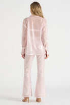 The Bra Top is a bralette that features adjustable spaghetti straps, three adjustable hook & eye closure. This garment is fully lined and has a slight stretch. Pairs perfectly with The Sequin Shirt and The Sequin Pant. Body fabric: 95% Polyester, 5% Spandex. Lining: 94% Polyester, 6% Spandex.Please refer to care label for garment care instructions. Colours may appear slightly different to the website due to lighting, computer picture resolution and monitor settings.