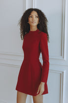 DELPHI LONG SLEEVE MINI DRESS - BURGUNDY