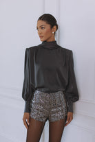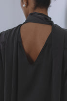 REVANA SATIN TIE NECK BLOUSE - CHARCOAL