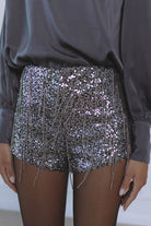 WRENLEY FRINGE MINI SHORTS - BLACK/SILVER