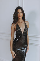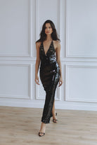 ALYSSIA DEEP-V MAXI DRESS - BLACK