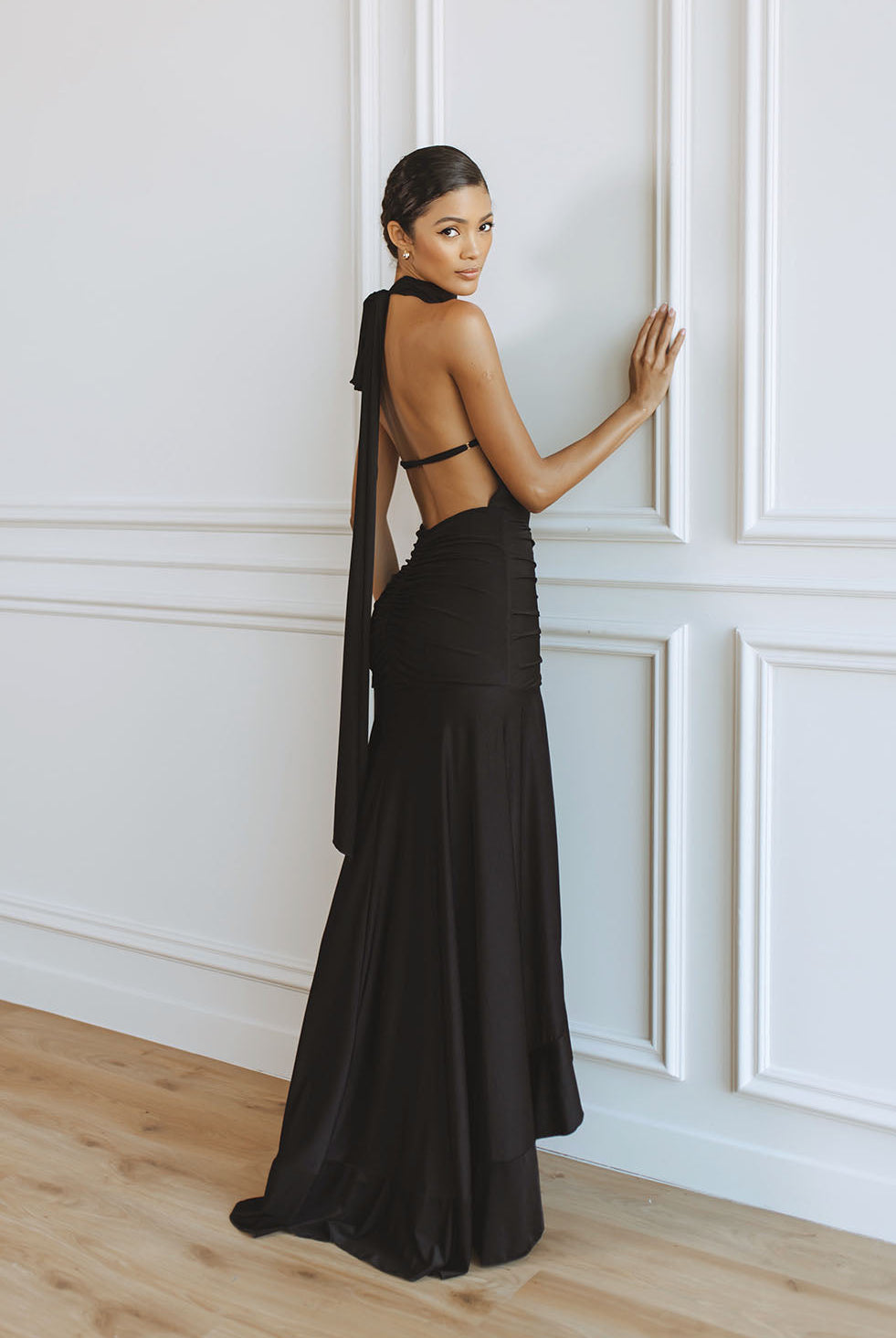 Black Halter Maxi Dress: A flattering neckline that enhances the shoulders and elongates the frame.