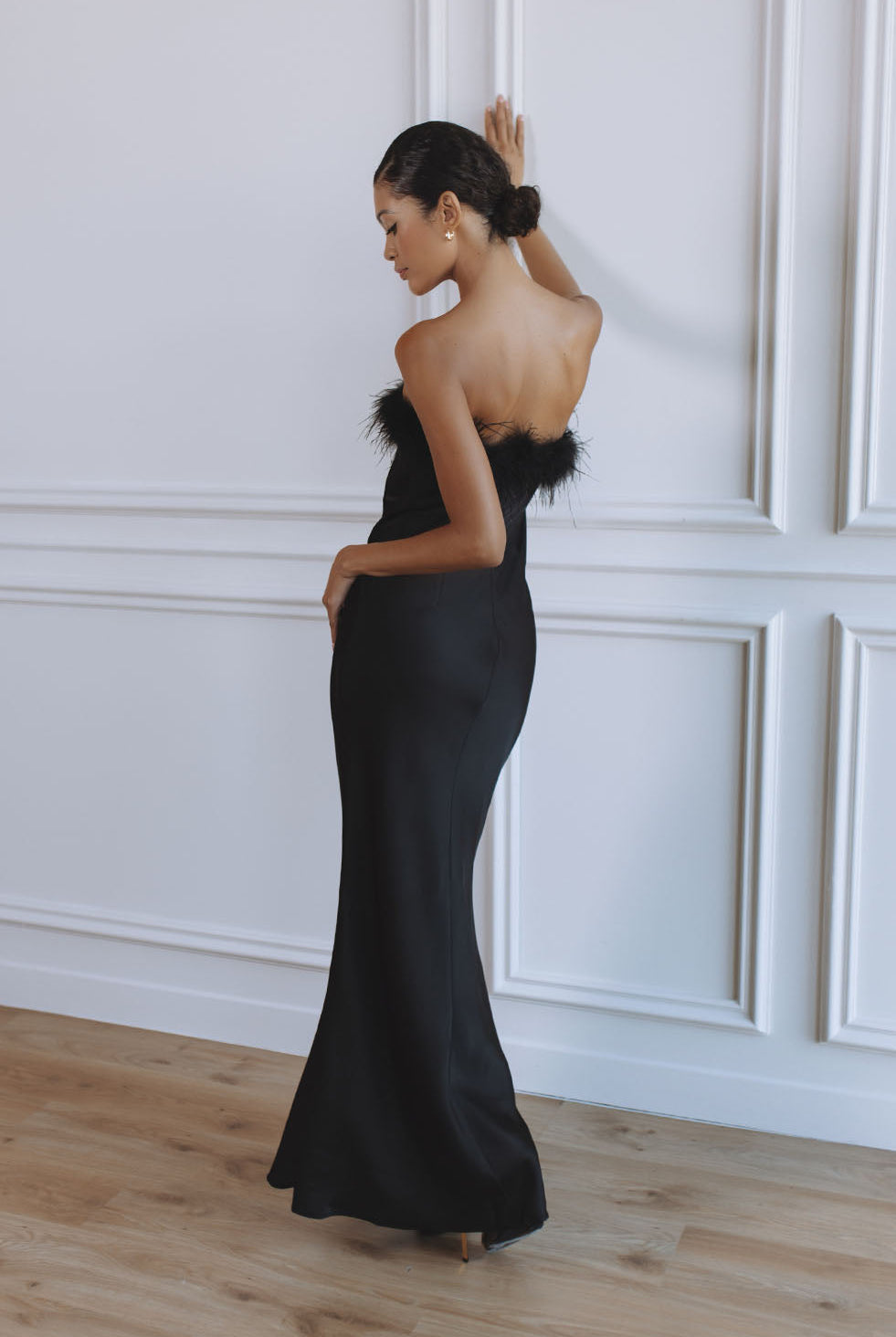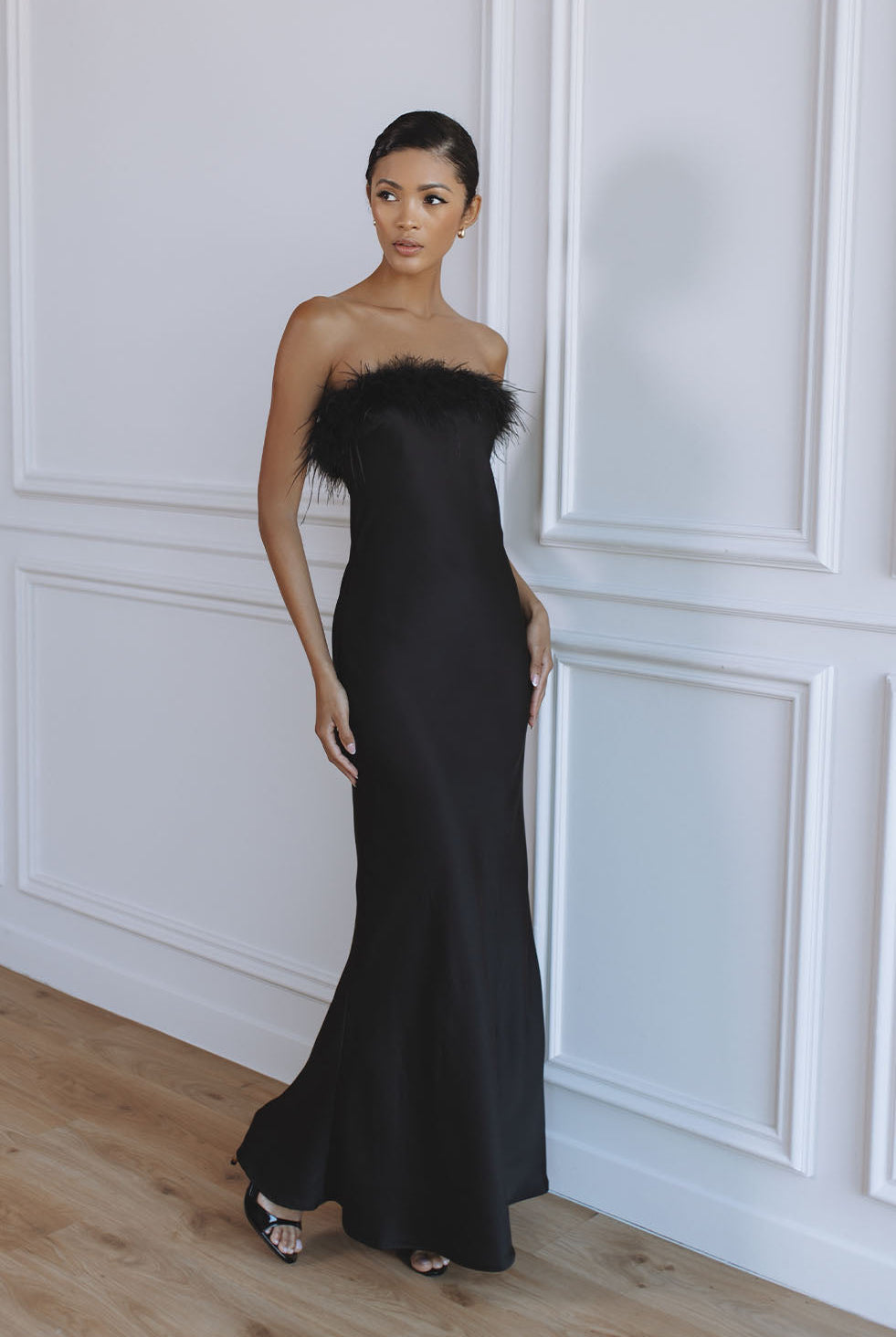 Black Strapless Maxi Dress: Highlights the neckline and shoulders for a sleek, statement look.