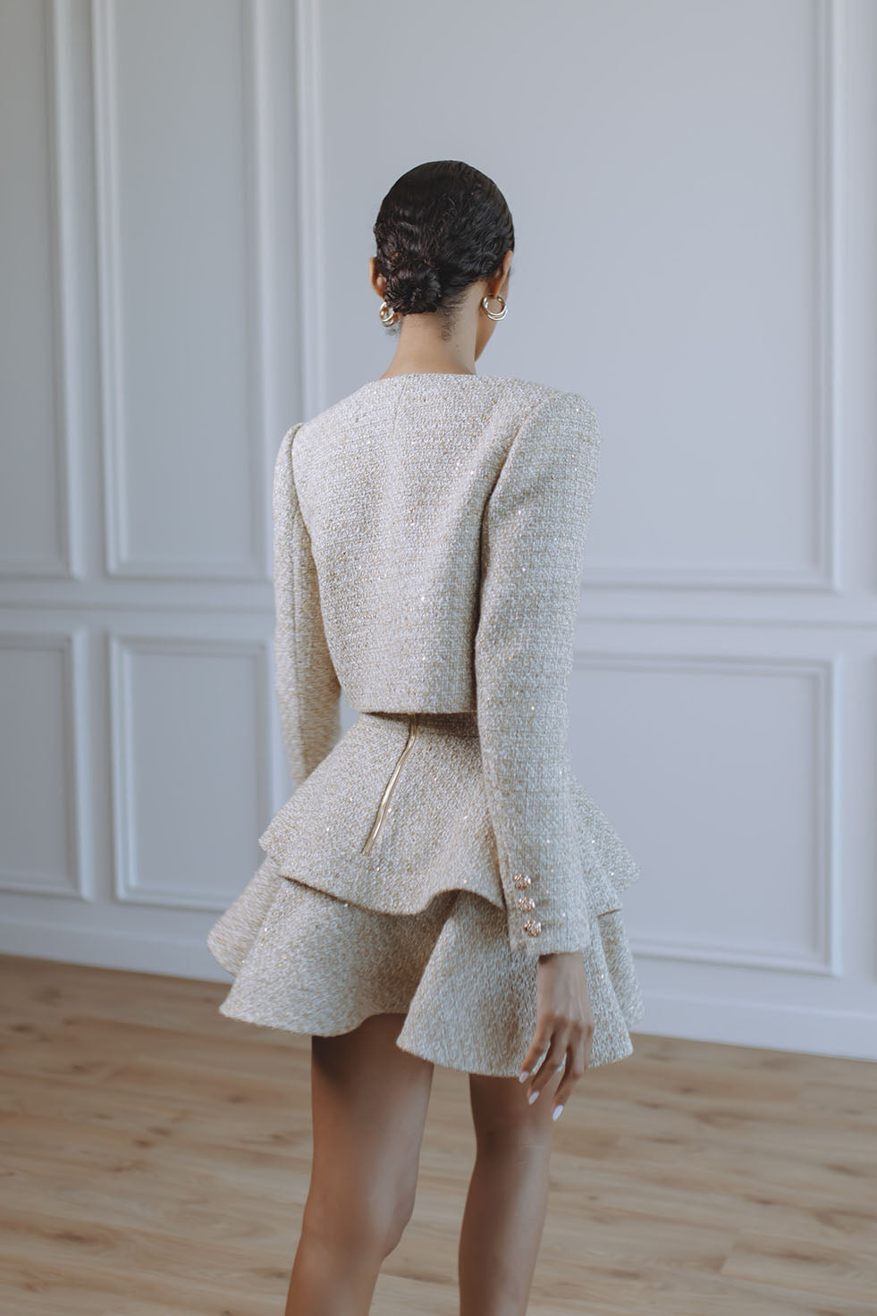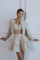 MARGAUX BOUCLE TIERED MINI SKIRT - LIGHT GOLD