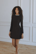 DELPHI LONG SLEEVE HOURGLASS MINI DRESS - BLACK