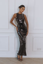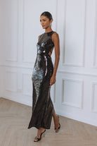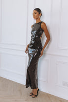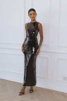 PORTIA SEQUIN MAXI DRESS - BLACK