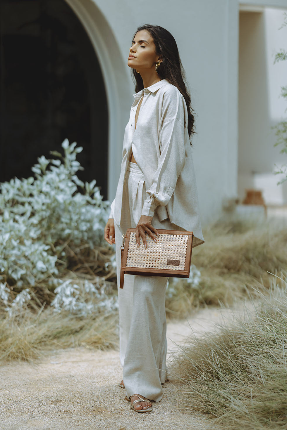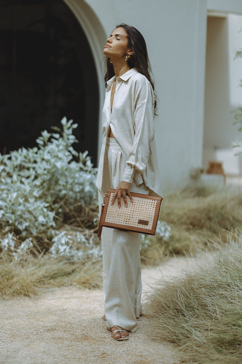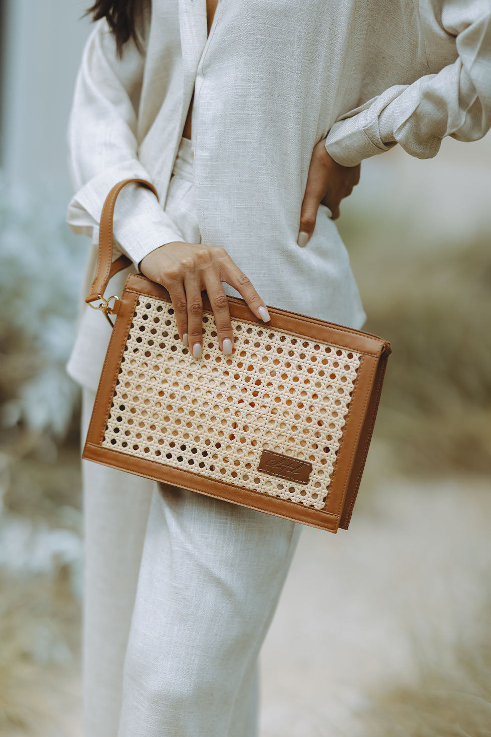 DUBAI RAFIA CLUTCH - TAN