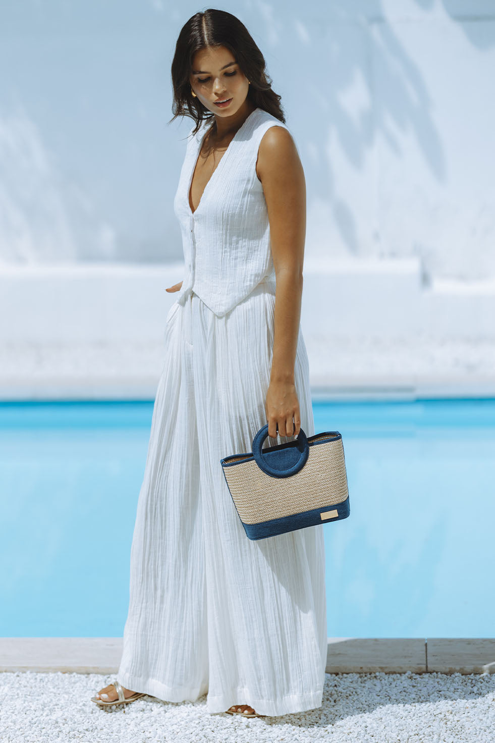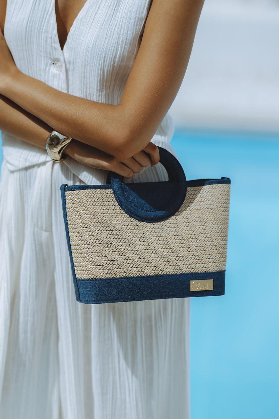 BELLA RAFFIA BAG - DENIM