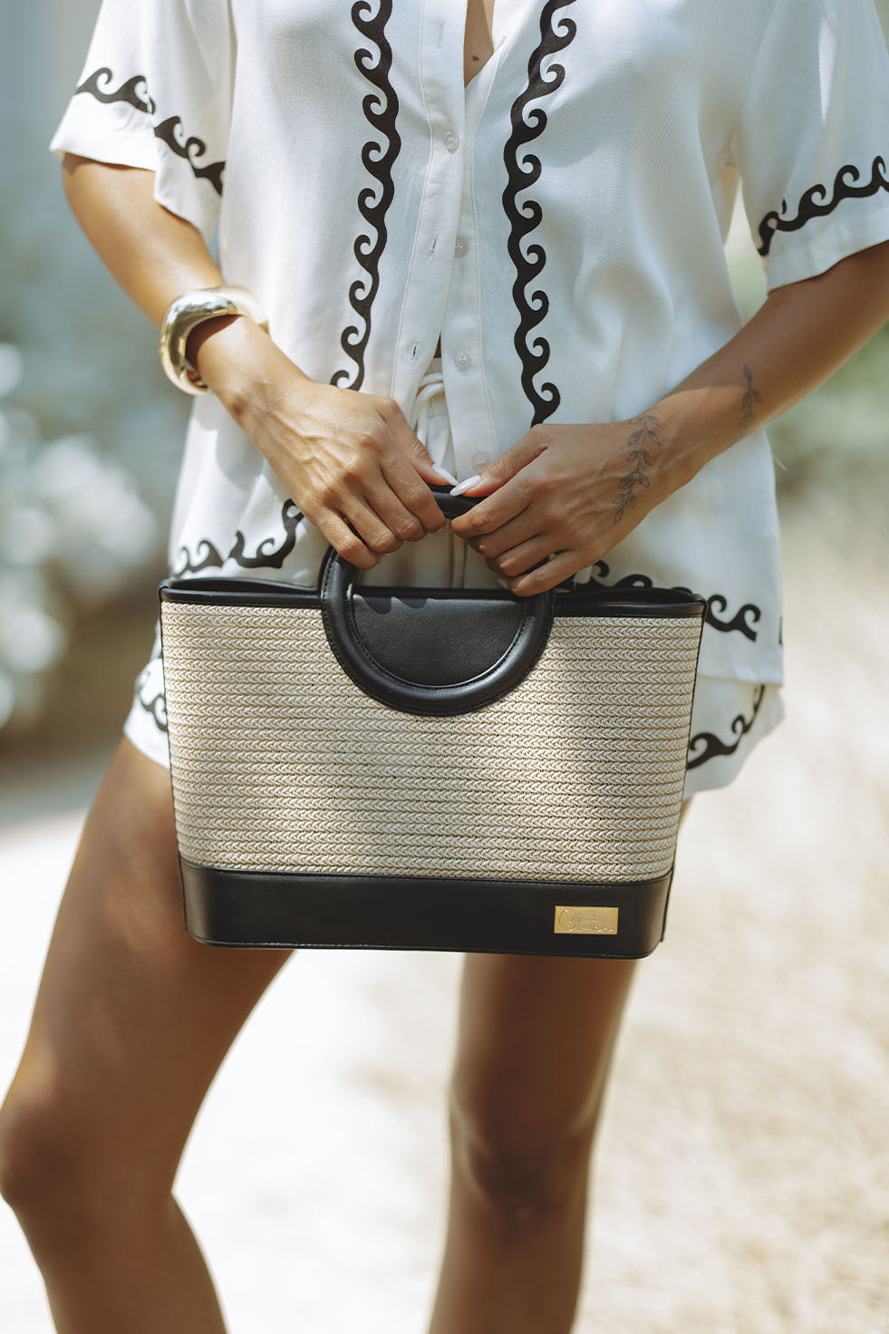 BELLA RAFFIA BAG - BLACK