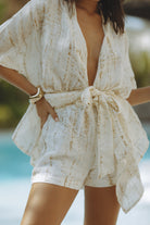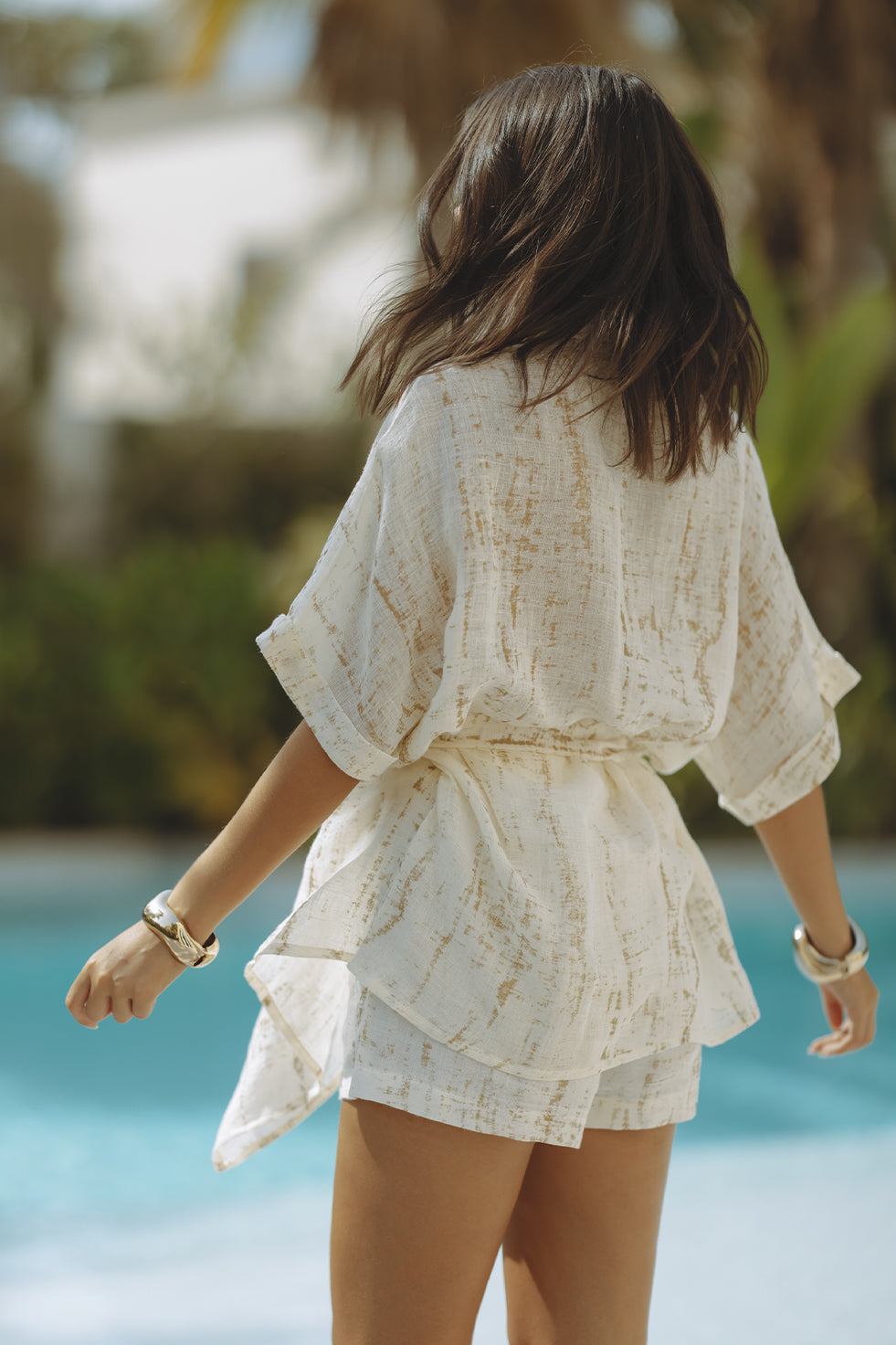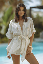 Step into luxe comfort with the Avila Set in Cream/Gold. Crafted from a blend of linen and cotton, this set features a relaxed-fit top with a tie-front and matching shorts. The subtle gold accents add a touch of glamour, perfect for poolside lounging or a casual day out. Embrace the effortless style and breathable fabric of the Avila Set, making every moment feel like a summer escape.