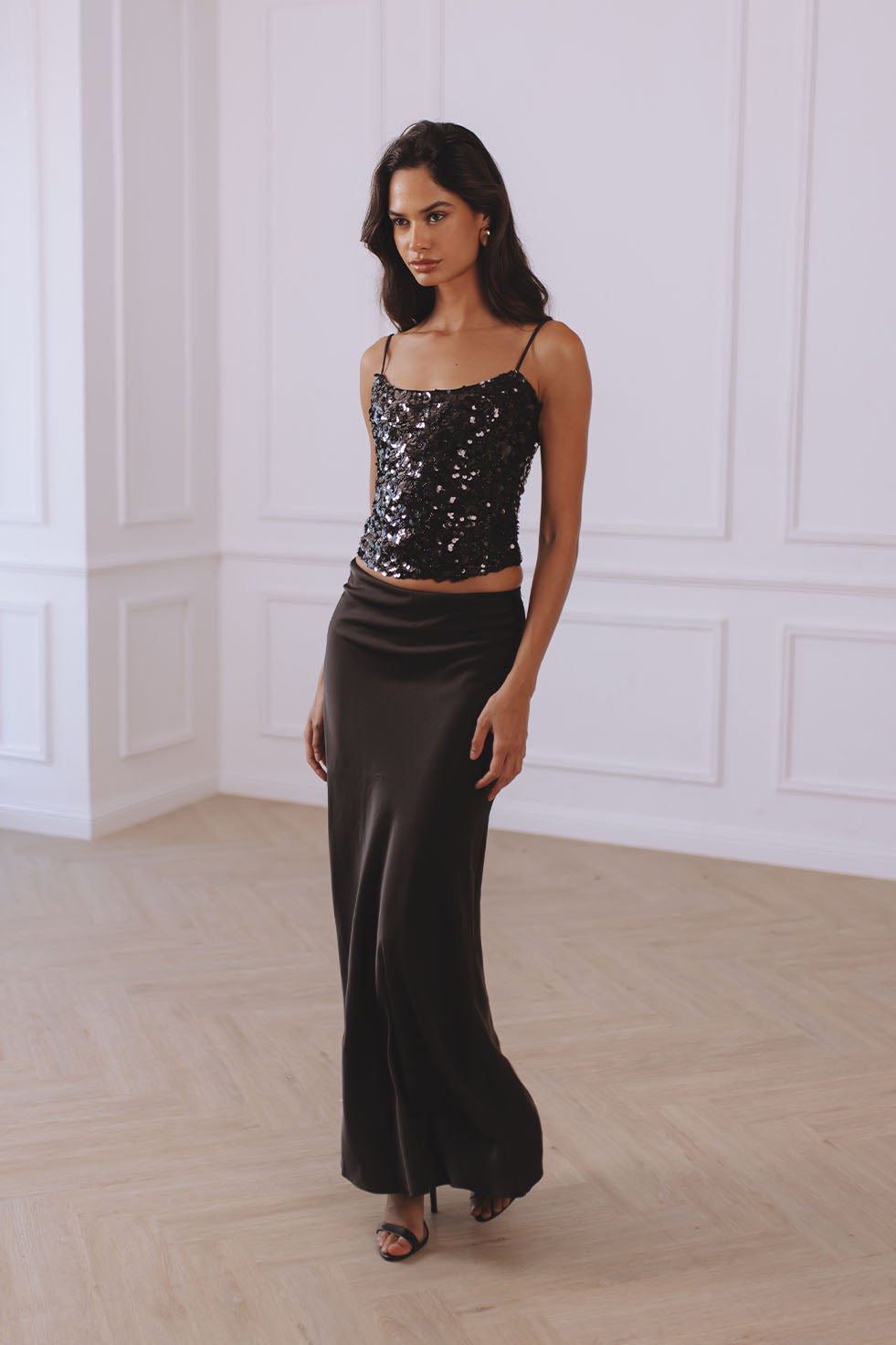 NESSA LOW WAIST MAXI SKIRT - BLACK