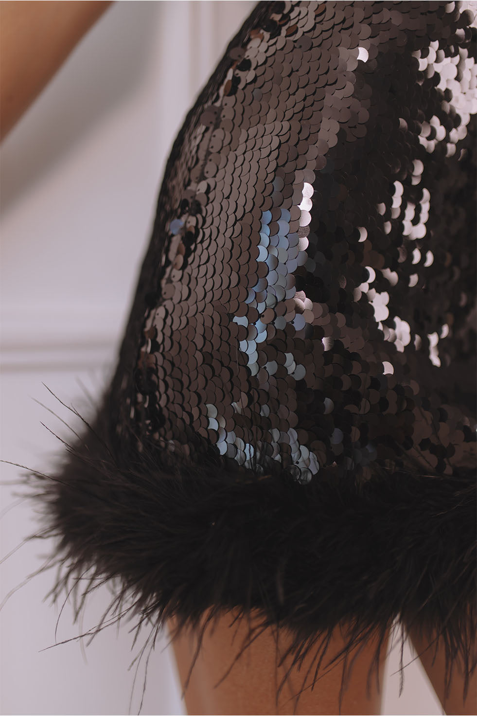 NICOLA FAUX FUR HEM MINI DRESS - BLACK