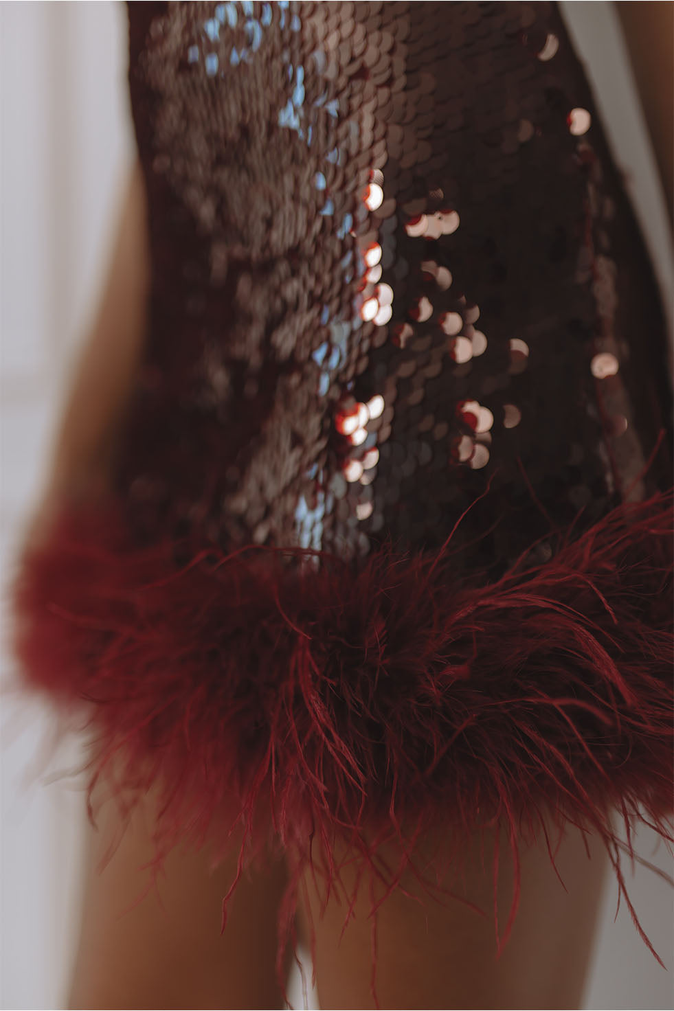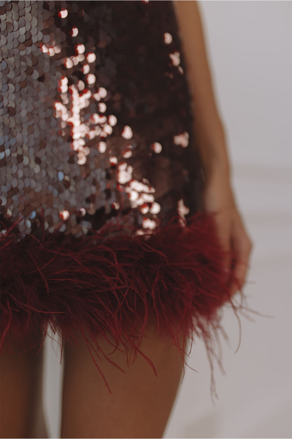 NICOLA FAUX FUR HEM MINI DRESS - CHERRY