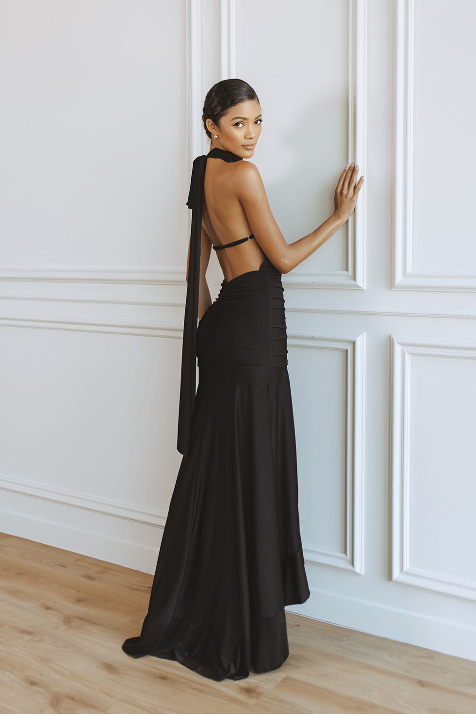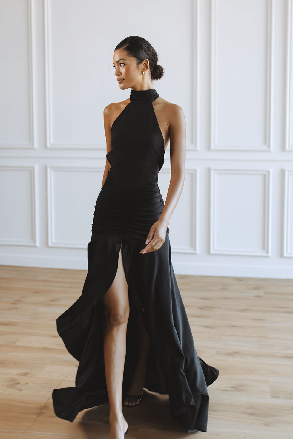ZELMA HIGH NECK MAXI DRESS - BLACK