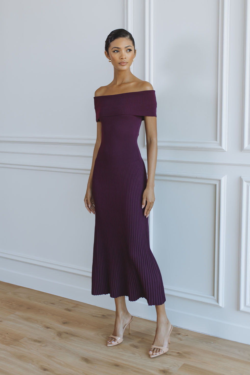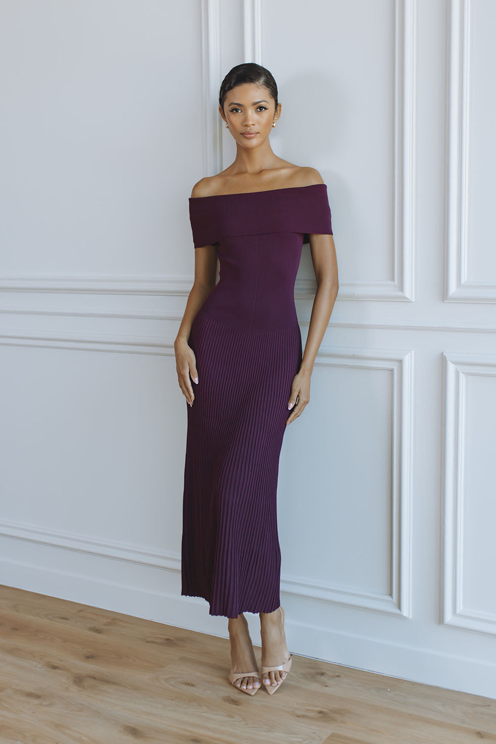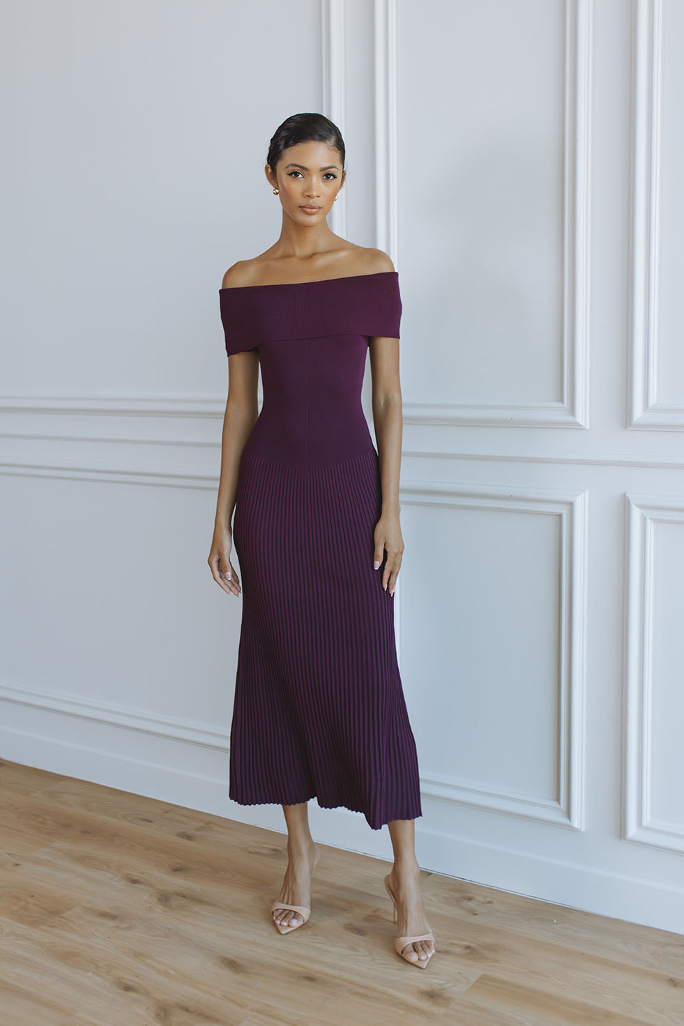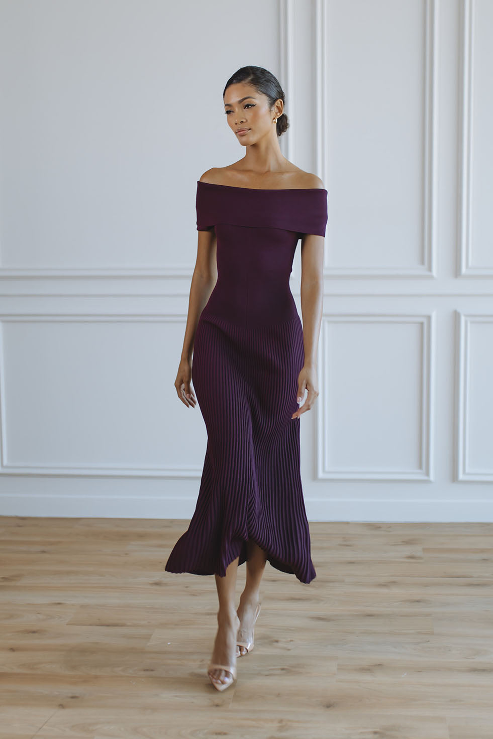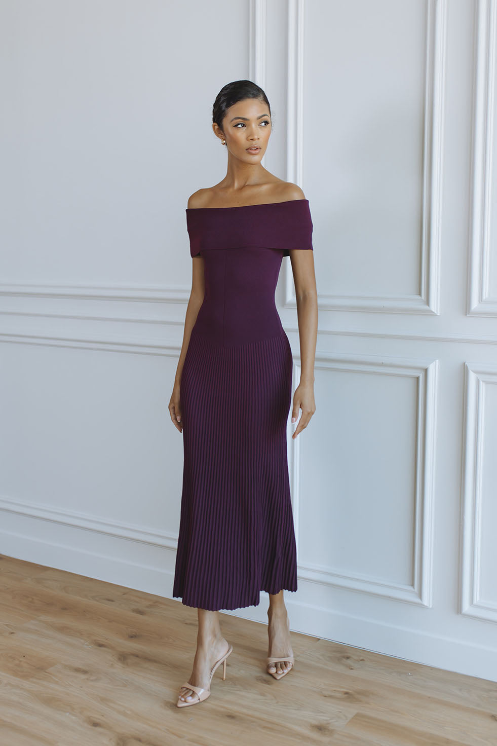 HARRO PLEATED KNIT DRESS - DEEP PLUM