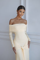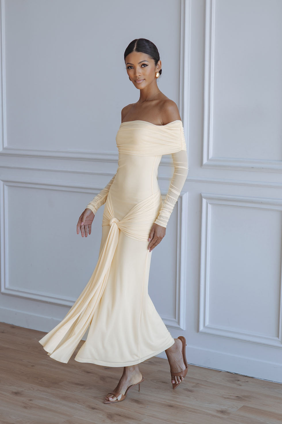 SELINA TIE FRONT MESH DRESS - BUTTERCUP