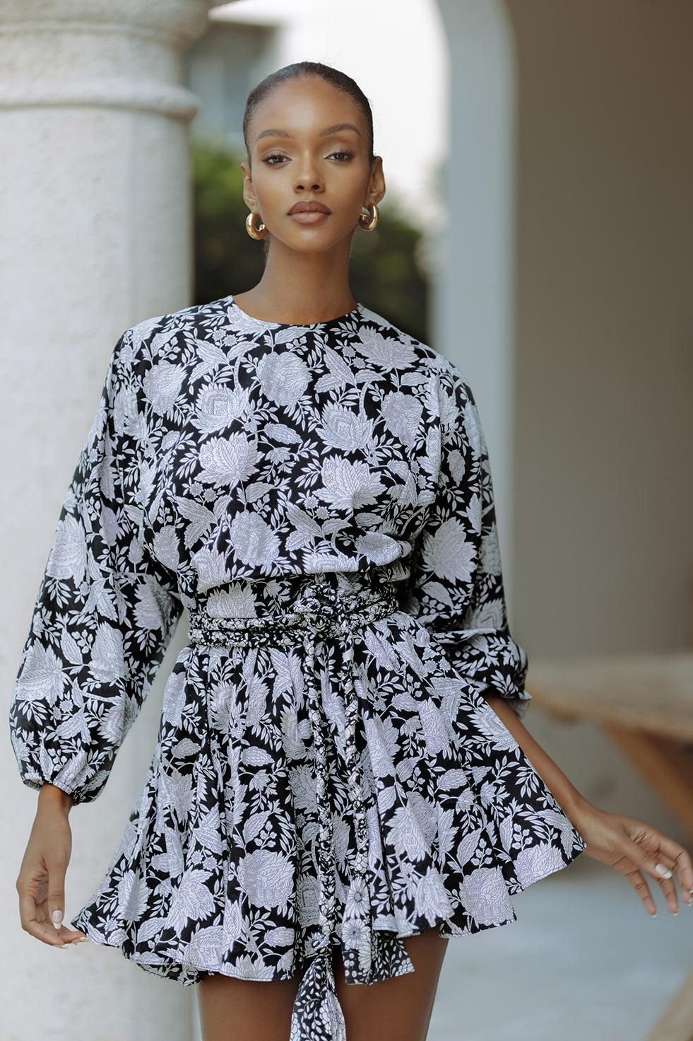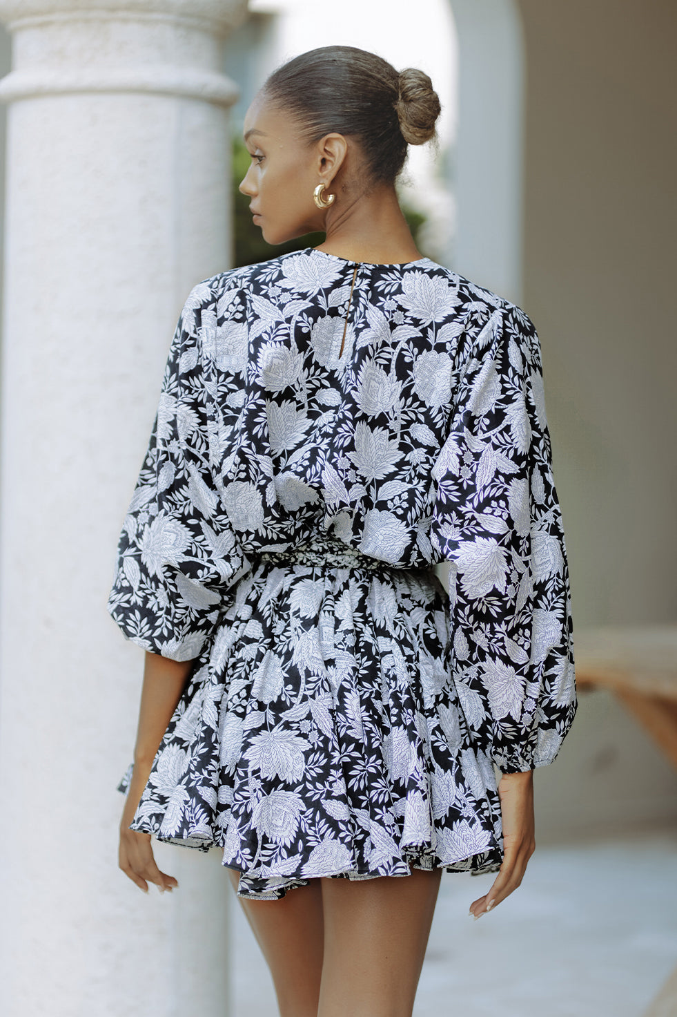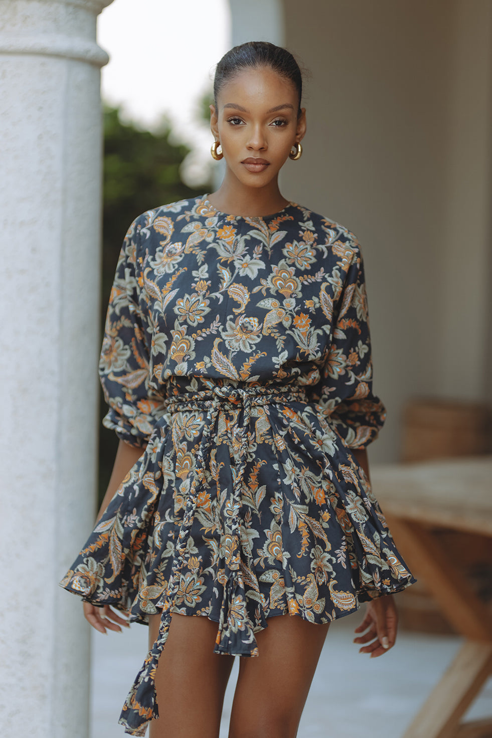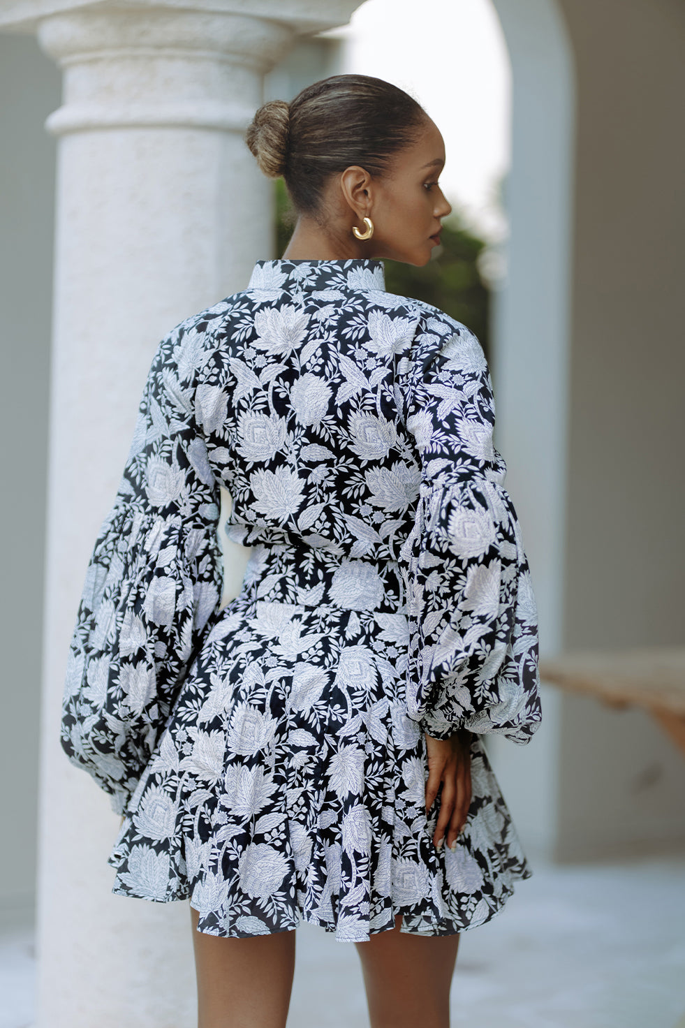 ZILPAH COTTON MINI DRESS - BOTANIC ETCH