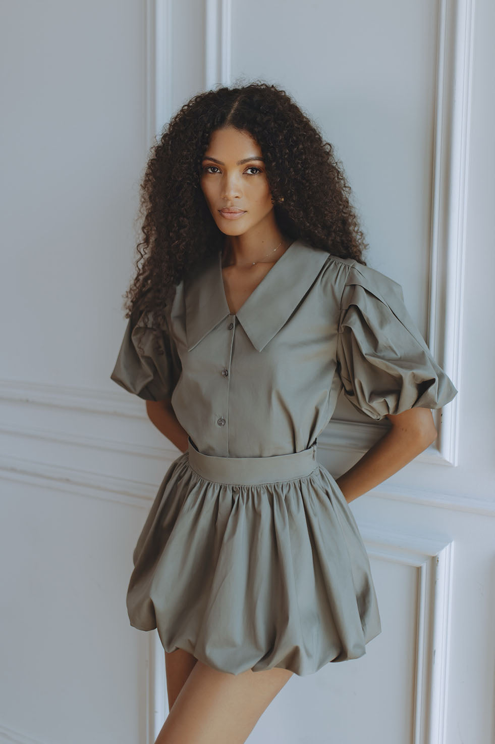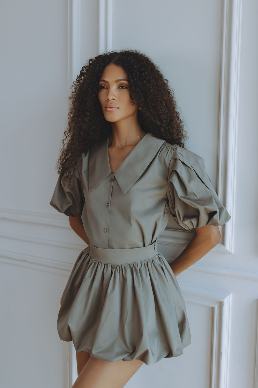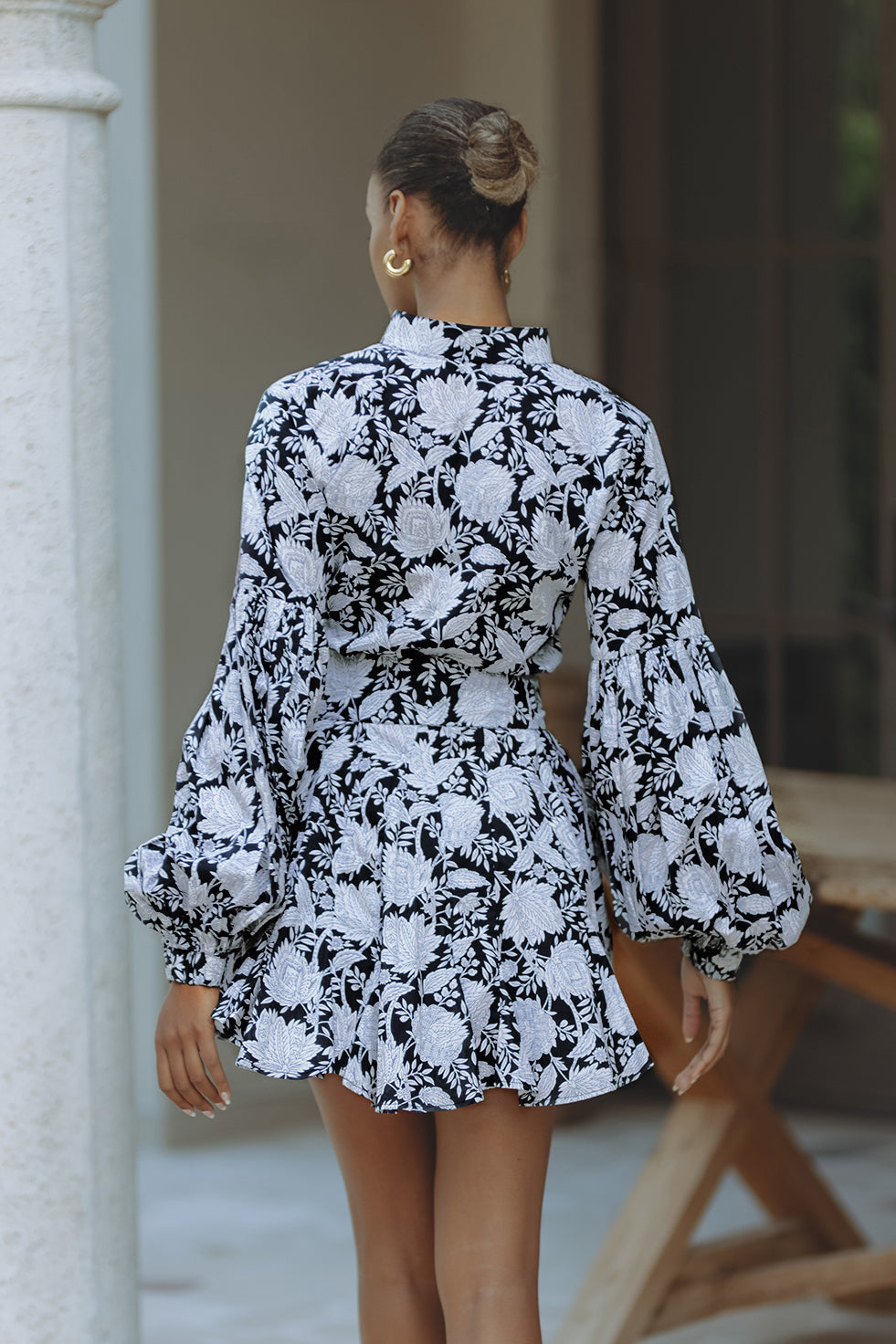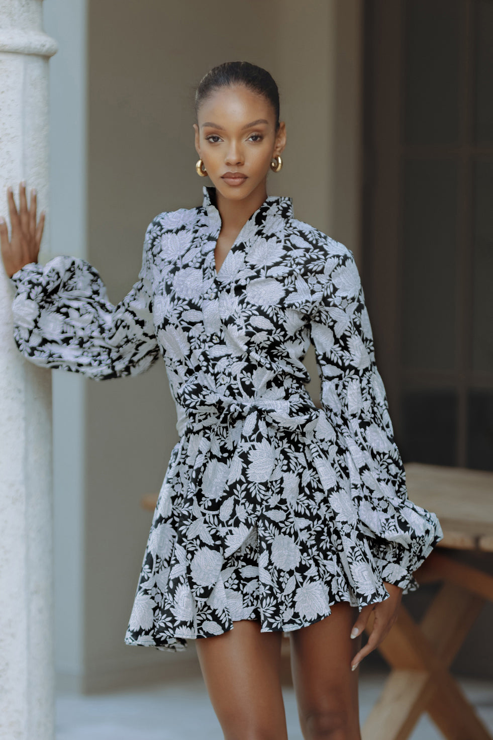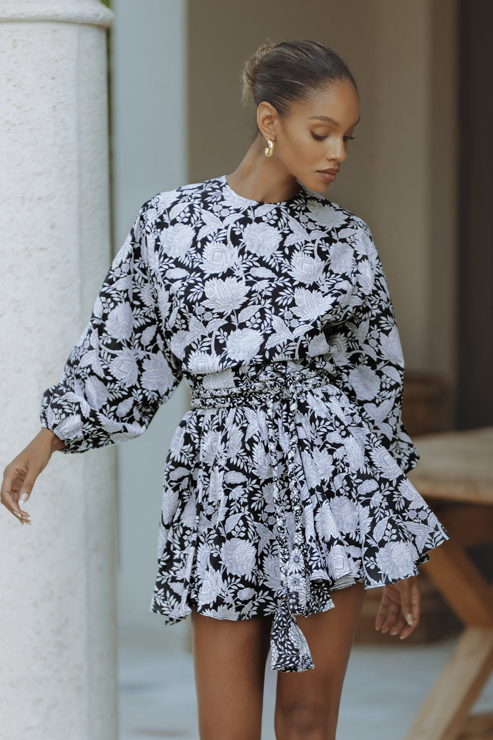 ZILPAH COTTON MINI DRESS - BOTANIC ETCH