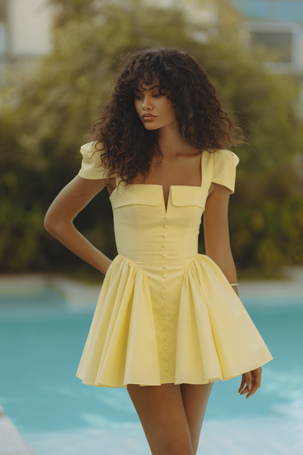 ANTONELLA COTTON MINI DRESS - CANARY YELLOW
