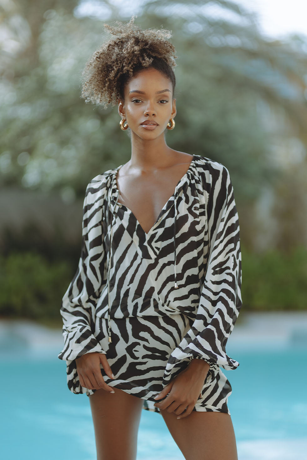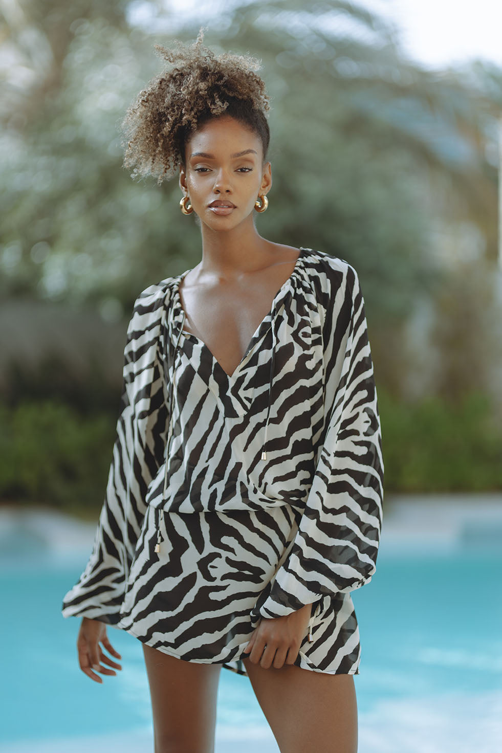 ZILPAH COTTON MINI DRESS - BOTANIC ETCH